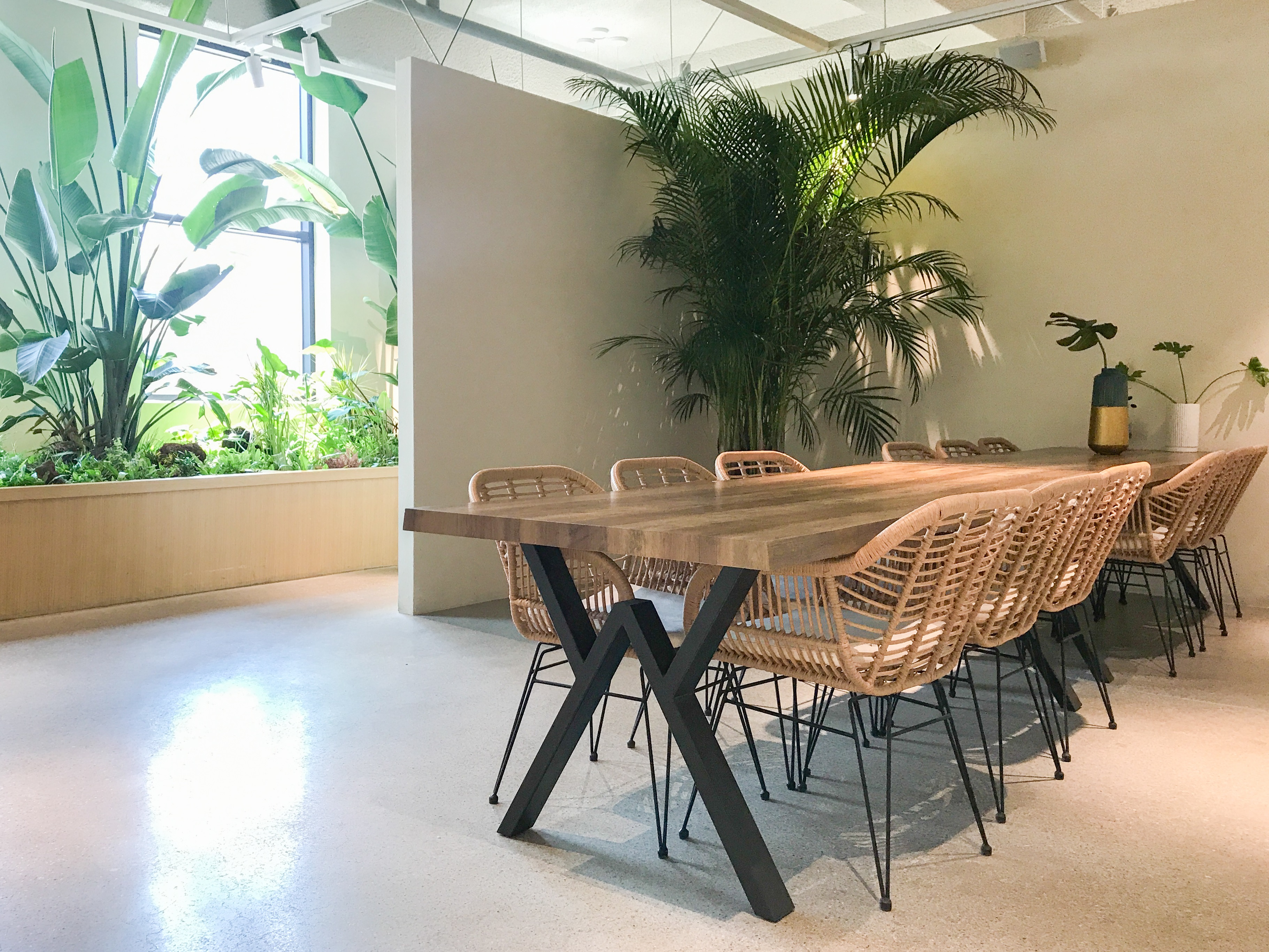 식물이 잘 자라려면 충분한 빛이 필요하기 때문에 앤트테라스의 공간은 대체로 밝은 편이에요. 식물을 오브제로 활용하고, 식물 자체로 플랜테리어를 했기 때문에 인테리어도 근사하답니다. 인스타그래머블에 딱 맞는 조건이죠.