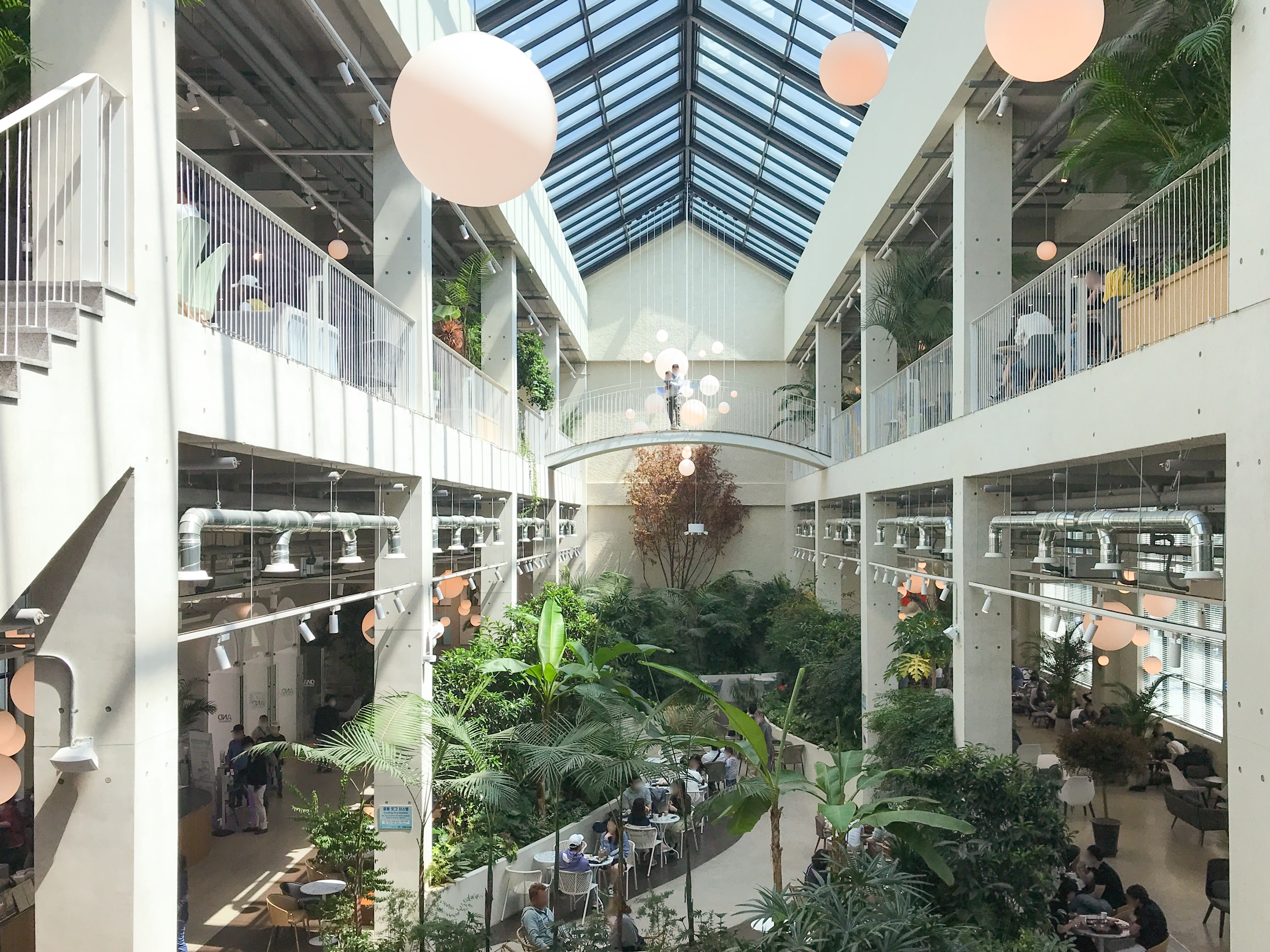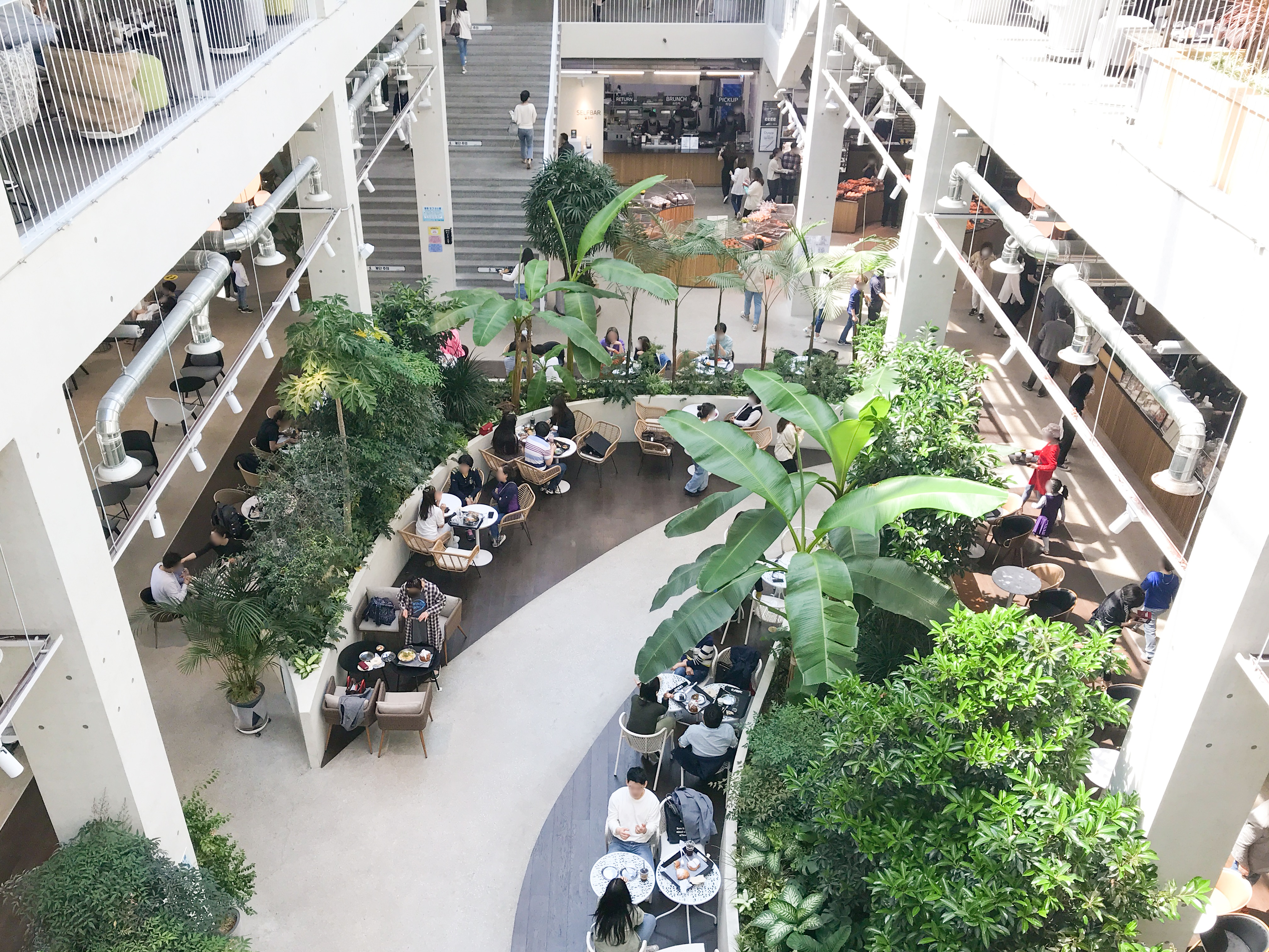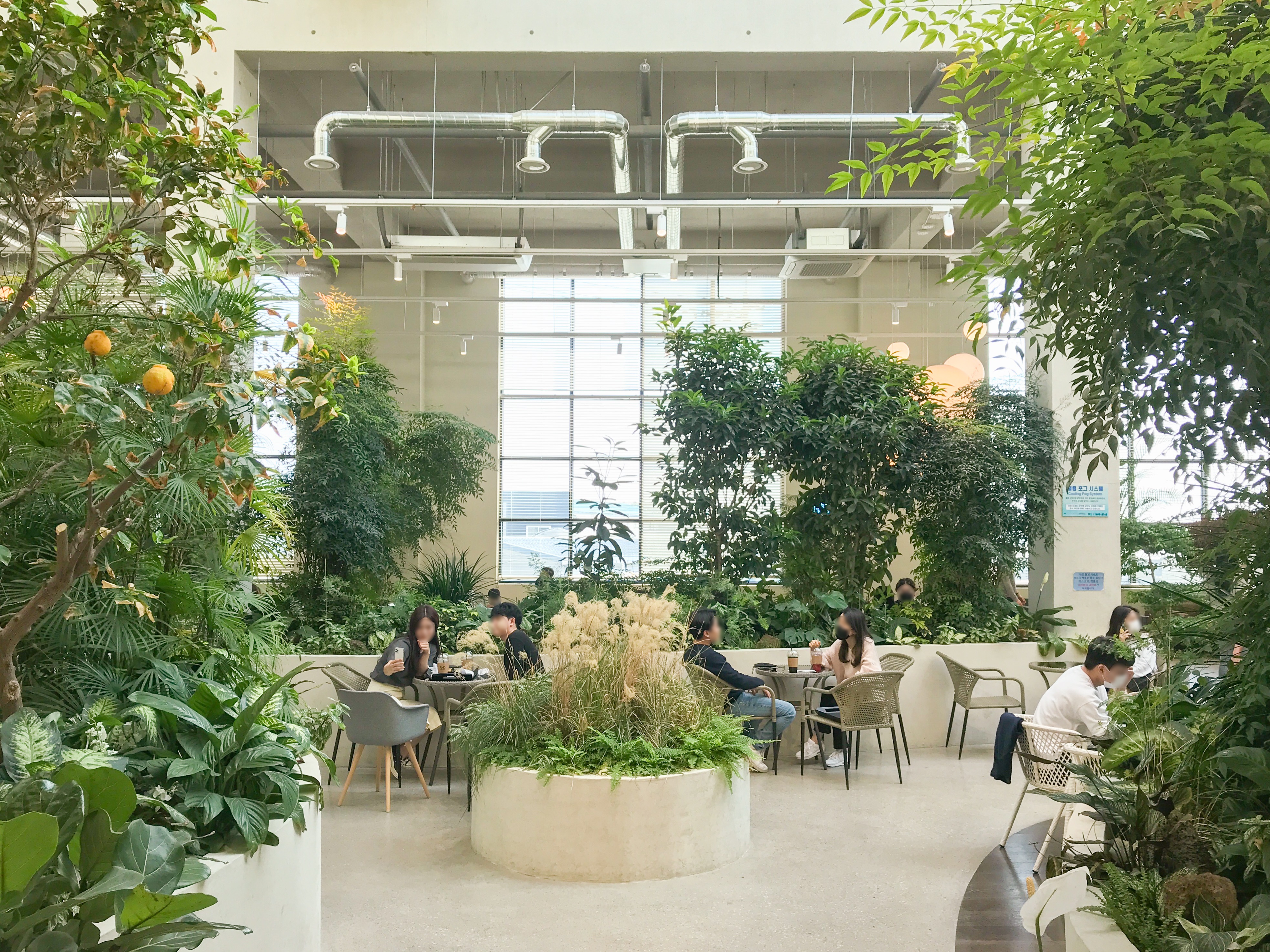 앤드테라스의 식물은 매주 정원사가 방문해 관리하고, 쿨링 포그 시스템으로 인체에 무해한 안개를 분사 시켜 미세먼지를 제거하고 공기를 정화하는 등 쾌적한 실내 환경을 조성해요. 덕분에 어느 숲속 부럽지 않은 맑은 공기를 자랑한답니다. 쿨링 포그 시스템은 말 그대로 여름에는 고압으로 분무 된 작은 물방울이 증발하면서 주위의 온도를 낮추는 역할도 하죠.