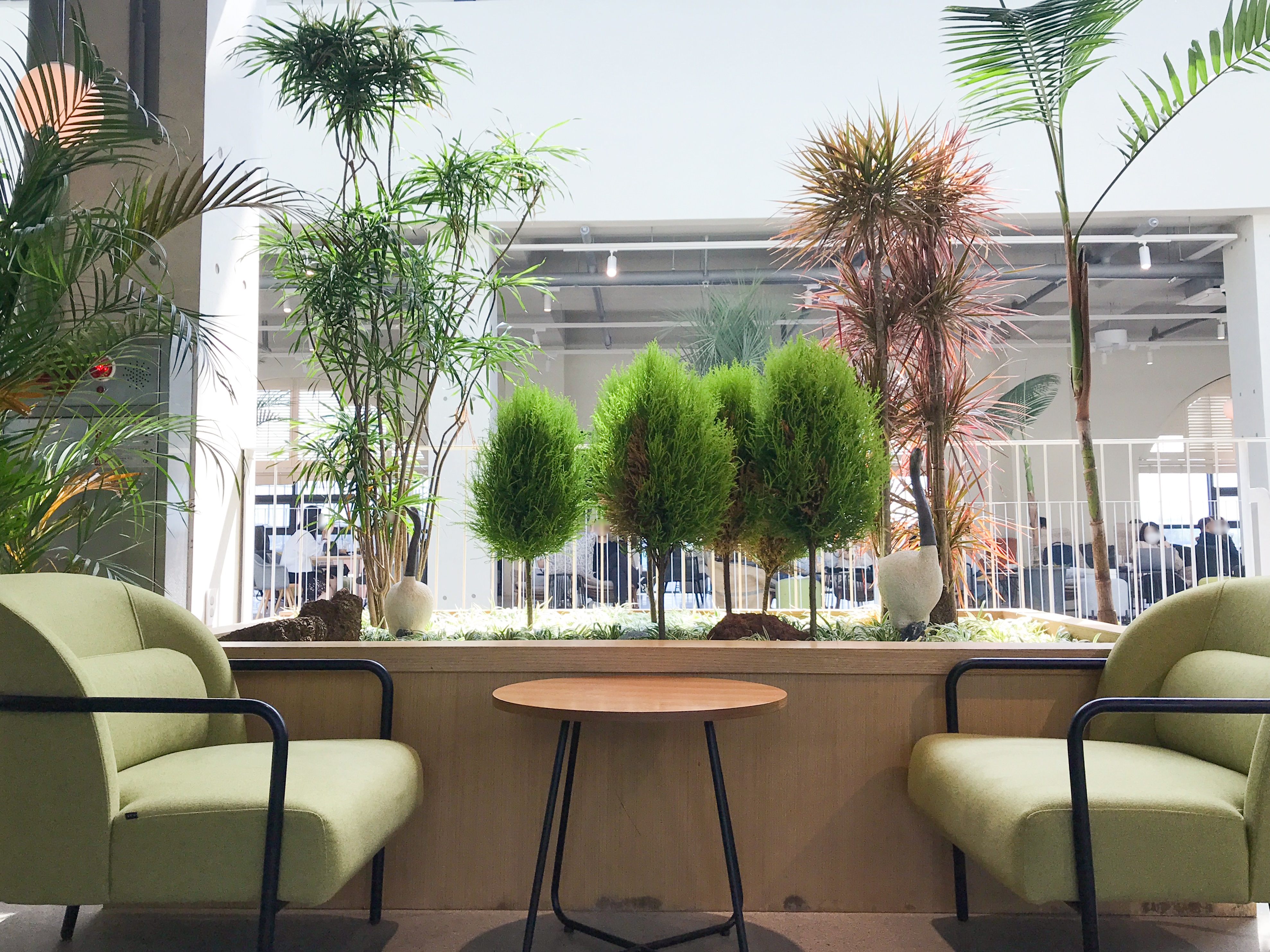 공원 산책로를 인공적으로 내부에 재연하는 일은 그리 간단하지 않았어요. 무심코 지나친 나무 한 그루조차도 야외의 스케일을 그대로 옮겨오기 위해 뿌리가 자리 잡을 수 있도록 충분한 체적을 확보한 화단을 1층 중앙에 계획했답니다.