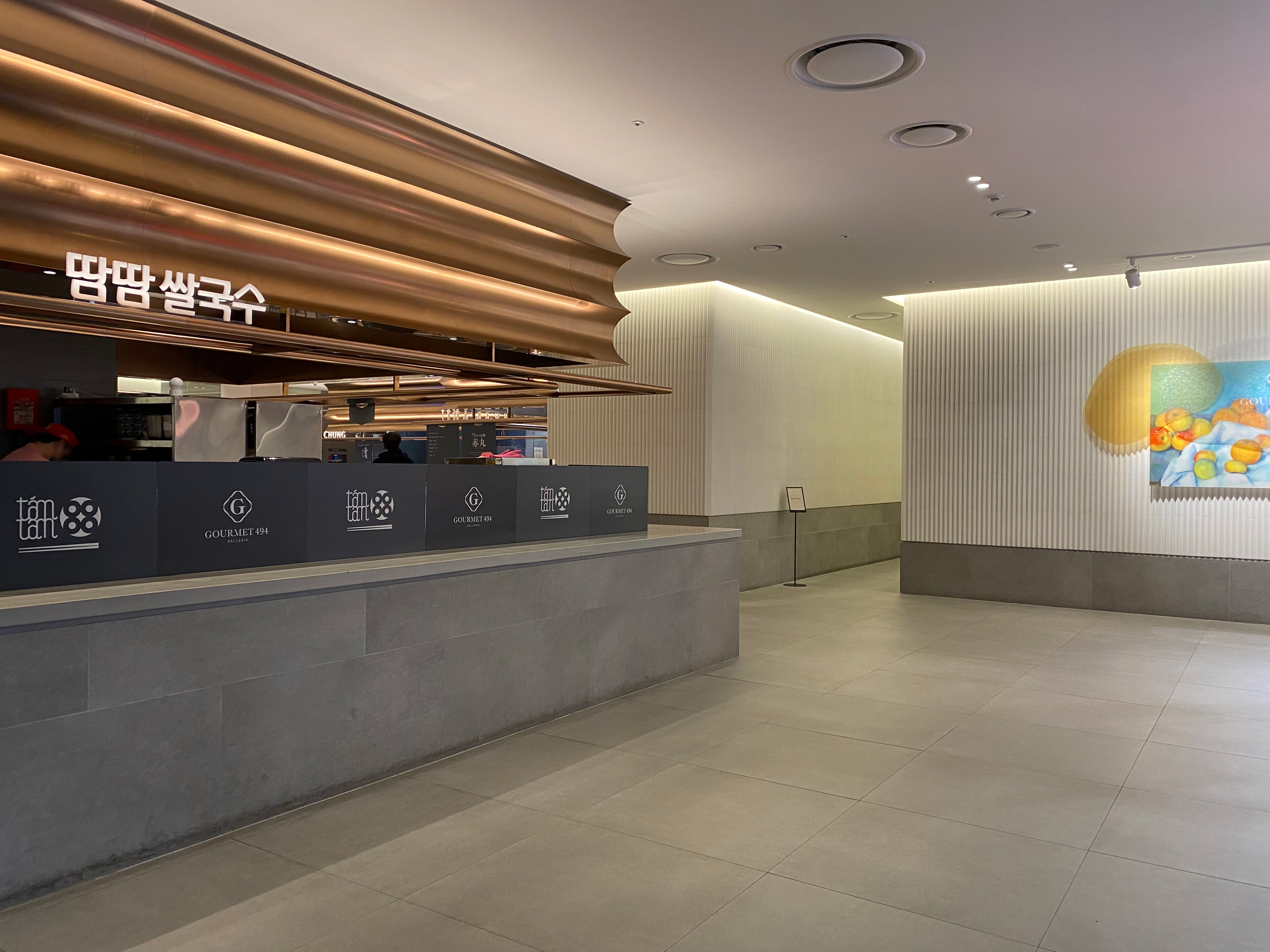 맛집으로 유명한 만큼 땀땀 칼국수, 아우어베이커리, 앤더슨씨, 블루보틀, 수린 한남 그리고 현선이네 떡볶이 등 맛집으로 이름을 날리던 음식점과 카페들이 가득했는데요. 푸드코트 느낌의 지하 2층에는 땀땀 칼국수, 아우어베이커리, 현선이네 떡볶이, 삐삣버거 등을 만날 수 있고 조금 더 조용하게 고급스러운 식사를 즐기고 싶으시다면 지하 1층에 위치한 한정식 수린, 양식 코르소를 추천합니다.