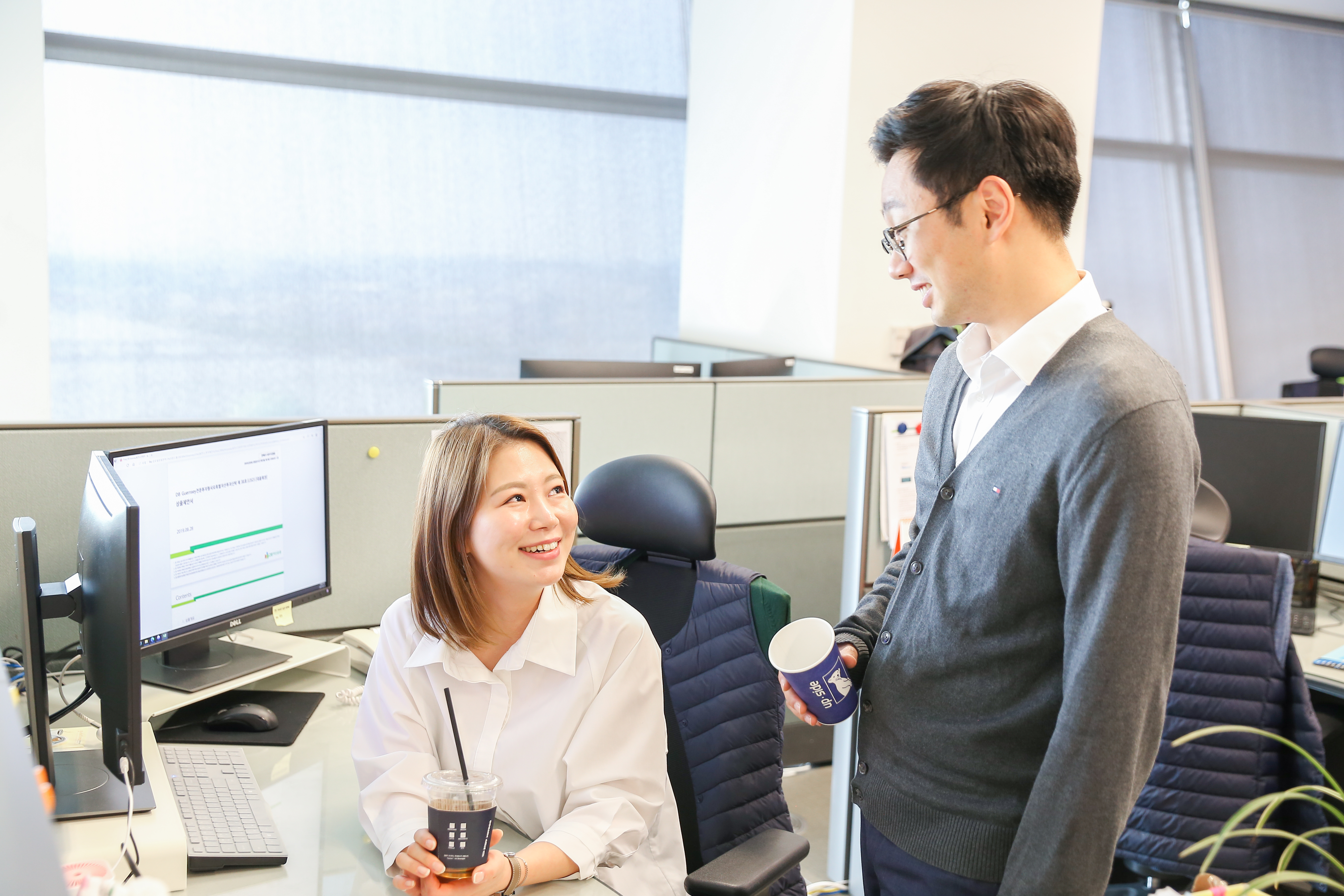 코로나19가 시작되기 전에는 사내 동호회나 학원 지원, 헬스 지원 등 다양한 복지가 있었어요. 하지만 현재는 대부분 중단된 상태입니다. 코로나 시대에도 이용할 수 있는 복지 중 마음에 드는 것을 꼽자면 사내 건물 지하에 있는 카페에서 매일 아침 모닝커피를 마실 수 있다는 점과 한 달에 한 번씩 생일자를 축하하는 간소한 파티를 개최하고 있는 점이 마음에 듭니다.