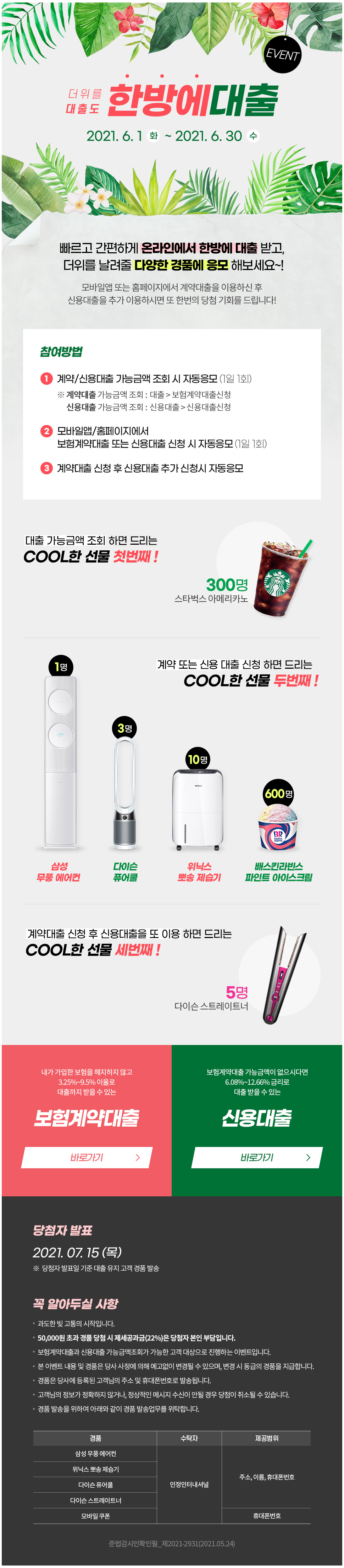 보험계약대출 또는 신용대출 신청 시 자동응모 (1일 1회)