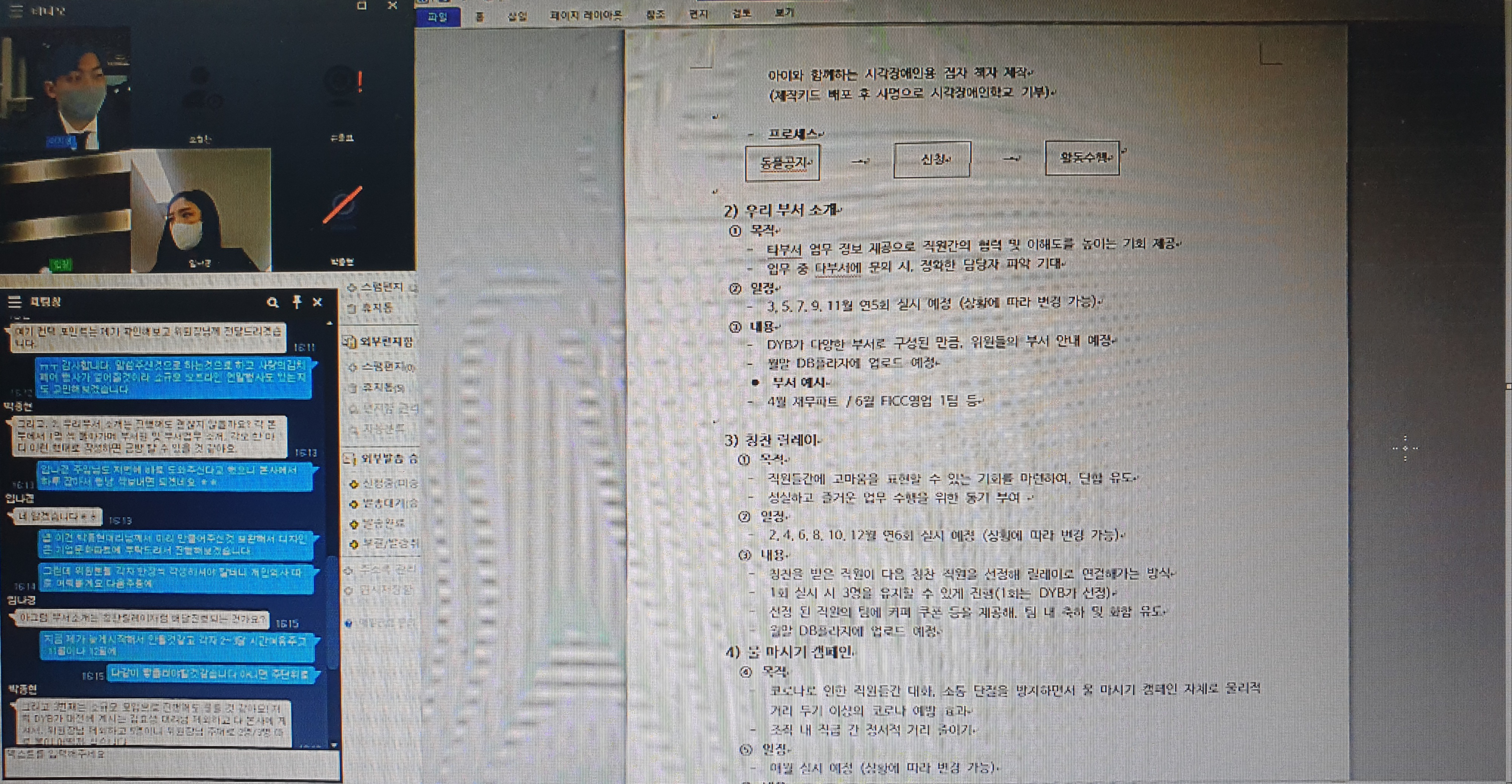 DYB는 소속 본부장 추천을 받아 7-10명으로 구성된다. 주로 사원, 주임, 대리급이 선발되는데, 비대면으로 모임이 축소되었지만 한 달에 한 번 온라인 정기모임을 갖고, 일 년에 두 차례 정도 오프라인에서 만난다.