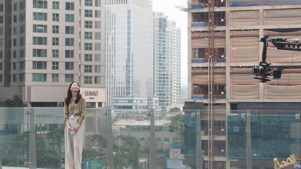 옥상 테라스, 멀리서 스트레칭을 하는 직장인 여성이 보인다. 가까이 가보니, 핸드폰으로 수익률을 확인하며 뿌듯해 하고 있다. ‘꿈을 키우는 것이 뿌듯한 사람’, 바로 든든한 투자 파트너 DB금융투자의 고객이다. 투자의 기쁨이 드러날 수 있도록 활짝 웃는 배우의 표정을 클로즈업 촬영하였다. 이 장면을 위해 지미집도 동원되었다.