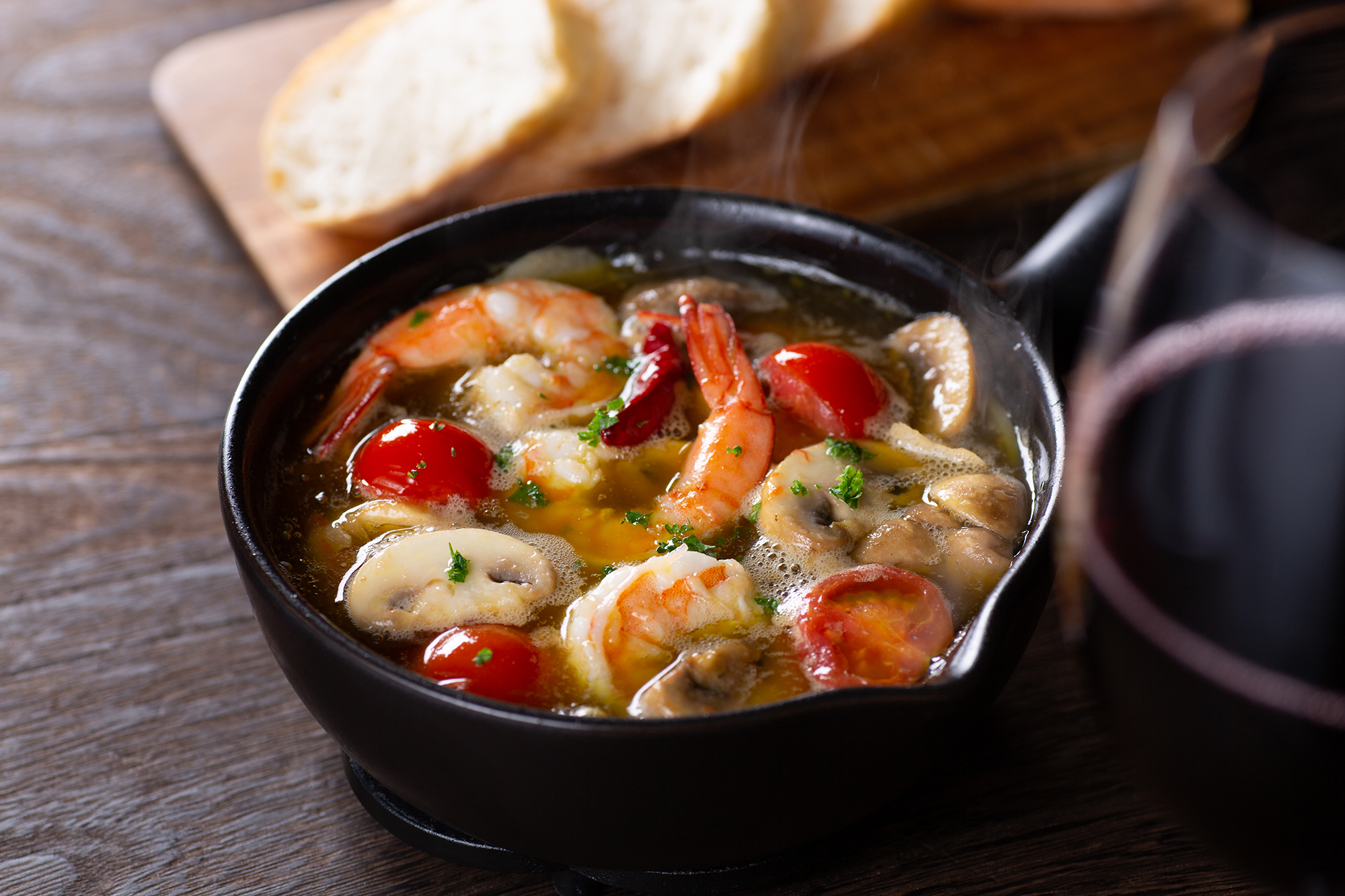 요즘 파란 하늘이 보랏빛으로 저무는 석양이 정말 아름답죠. 이럴 때는 스페인 풍의 ‘감바스 알 아히요’를 보글보글 끓여서 술 한 잔 어떠세요? 아이들이 있다면 파스타를 곁들여 주면 되니 술안주와 끼니를 모두 해결할 수 있습니다. 좋은 새우만 있다면 스페인 요리라고 해도 무엇보다 간단히 끝낼 수 있죠. 새우는 머리와 꼬리만 남기고 껍질을 벗겨주세요. 머리와 꼬리에서 나오는 감칠맛으로 오일에 풍미가 더해집니다. 뿔, 더듬이, 수염, 물총은 제거해주세요. 저는 보통 새우 등의 곡선을 따라 길게 칼집을 냅니다. 익는 동안 새우의 모양이 꽃처럼 피어나서 예쁘거든요. 새우, 통마늘, 마른 고추(페페론치노)만 있으면 준비는 끝! 물론 냉장고 속에 올리브, 파프리카, 브로콜리, 버섯, 호박, 허브(특히 이탈리안 파슬리) 등 무엇이든 넣을 재료가 있다면 먹기 좋게 손질해 두세요.