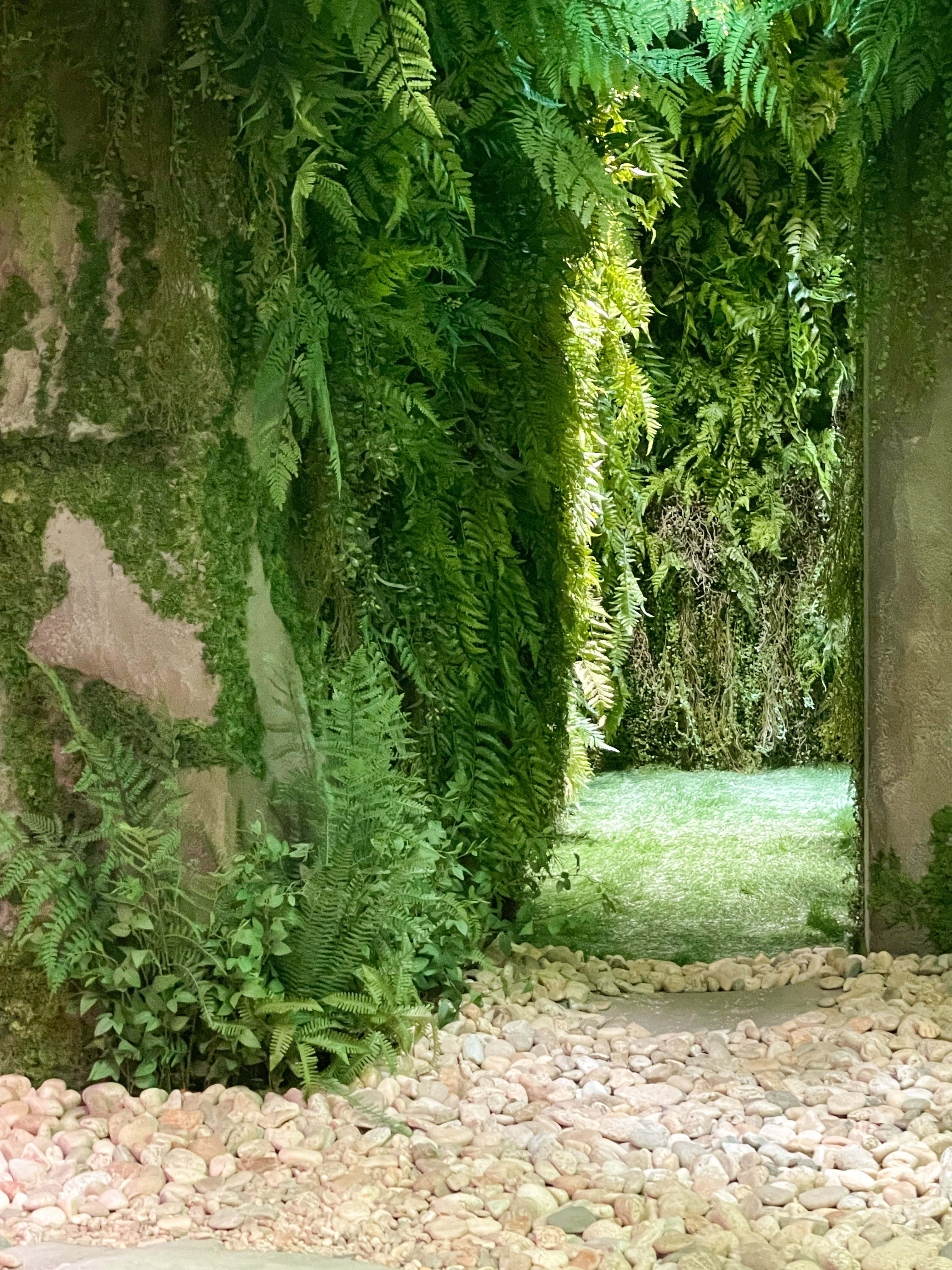 섬세이 테라리움은 맨발로 전시를 관람한다는 것이 상당히 이색적이었는데요. 지하 1층에서 신발을 락커에 보관해두고 차례가 되면 가이드와 함께 맨발로 전시를 관람하게 됩니다. 전시 공간은 1층부터 3층 그리고 4층 루프탑까지에요. 이곳은 라이프스타일 브랜드 ‘섬세이’에서 브랜드 리뉴얼을 기념해 새롭게 오픈한 공간으로 도심 속에서 자연을 느낄 수 있도록 기획됐어요. 섬세이가 만든 ‘테라리움’이라는 이 공간은 작은 유리병 안에 흙과 식물을 심어 새로운 환경을 만든 ‘테라리움’처럼, 건물 자체가 거대한 가상의 테라리움이라는 생각으로 보면 좋을 것 같아요.