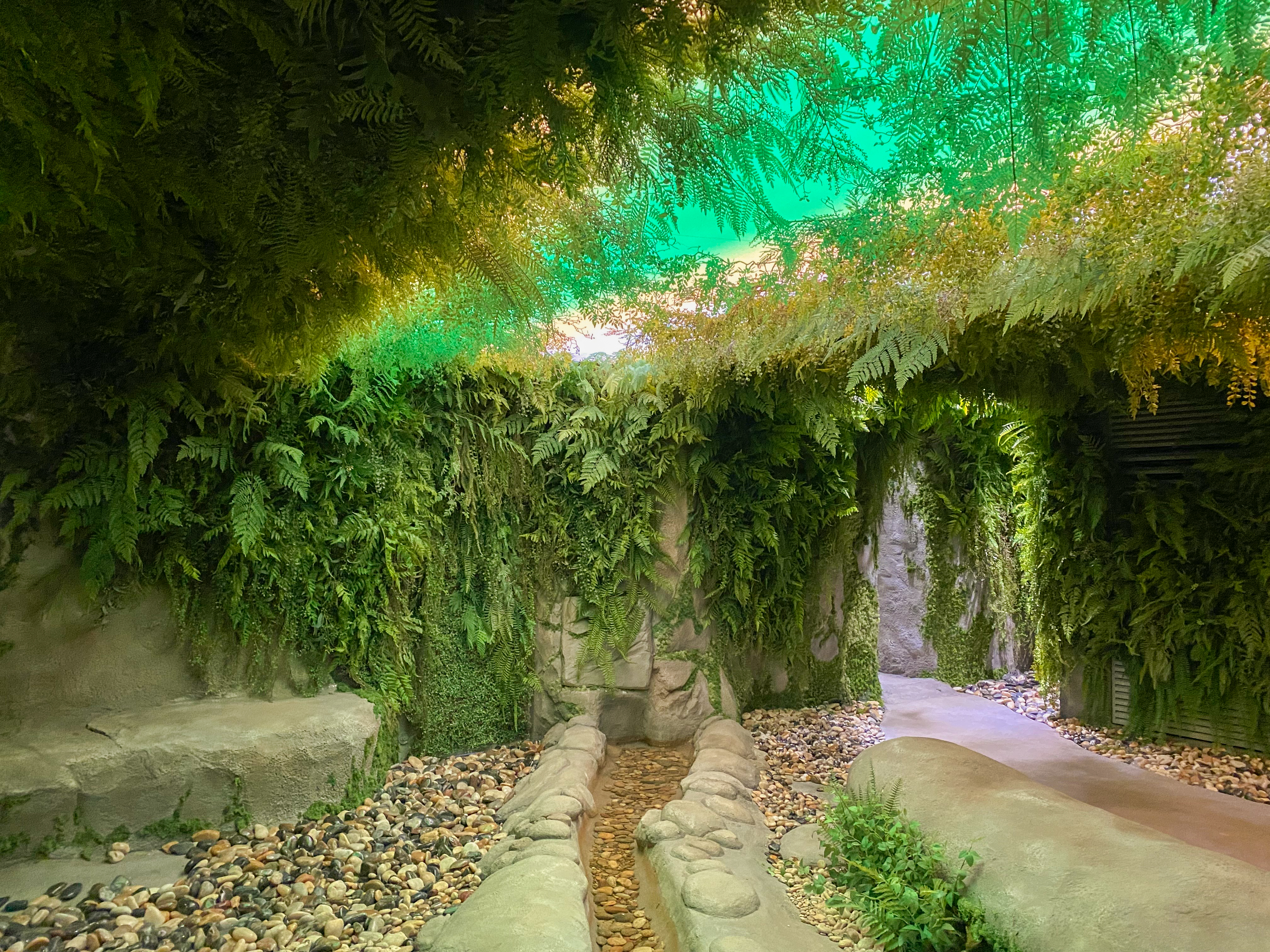 섬세이가 만들어낸 도심 속 자연이 그대로 재현돼 있습니다. 발아래로는 자연 그대로의 자갈과 나무줄기들이 느껴져 복잡한 도심에서 갑자기 자연 한복판으로 끌려 들어온 기분이에요. 특히 이 공간은 바닥에 자갈돌이 많이 깔려 있어 자연스럽게 발바닥 지압이 가능했어요.