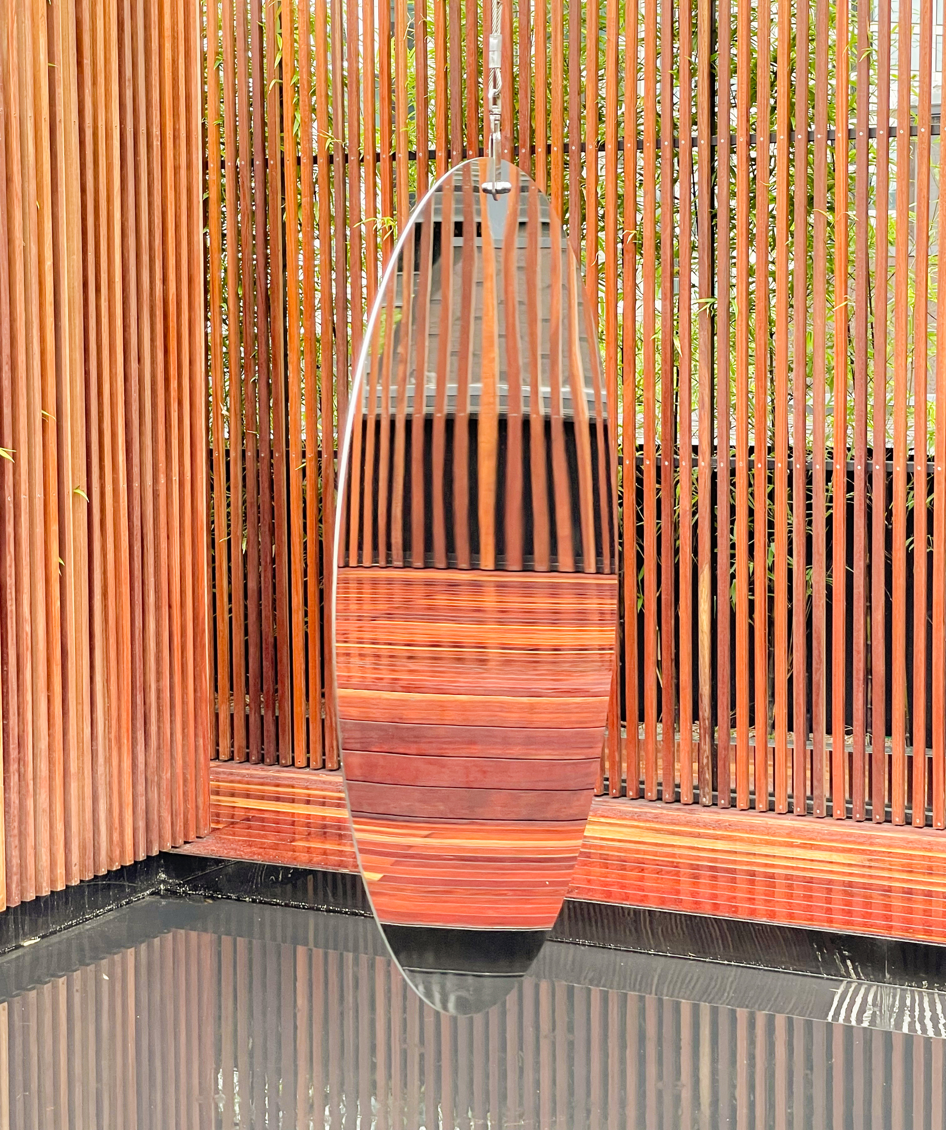 길고 좁은 나무 길을 지나면 섬세이 테라리움에서 가장 유명한 스팟이 나옵니다. 아래에 인공 연못이 찰랑이고 주변의 나무와 하늘을 투명하게 비추는 거울입니다. 연못 위에는 매달린 커다란 원형 거울은 바람의 방향과 세기에 따라 좌우로 방향과 속도를 바꾸며 움직여요. 이때 순간포착을 잘하면 거울 속에 비친 내 모습을 찍을 수도 있답니다.