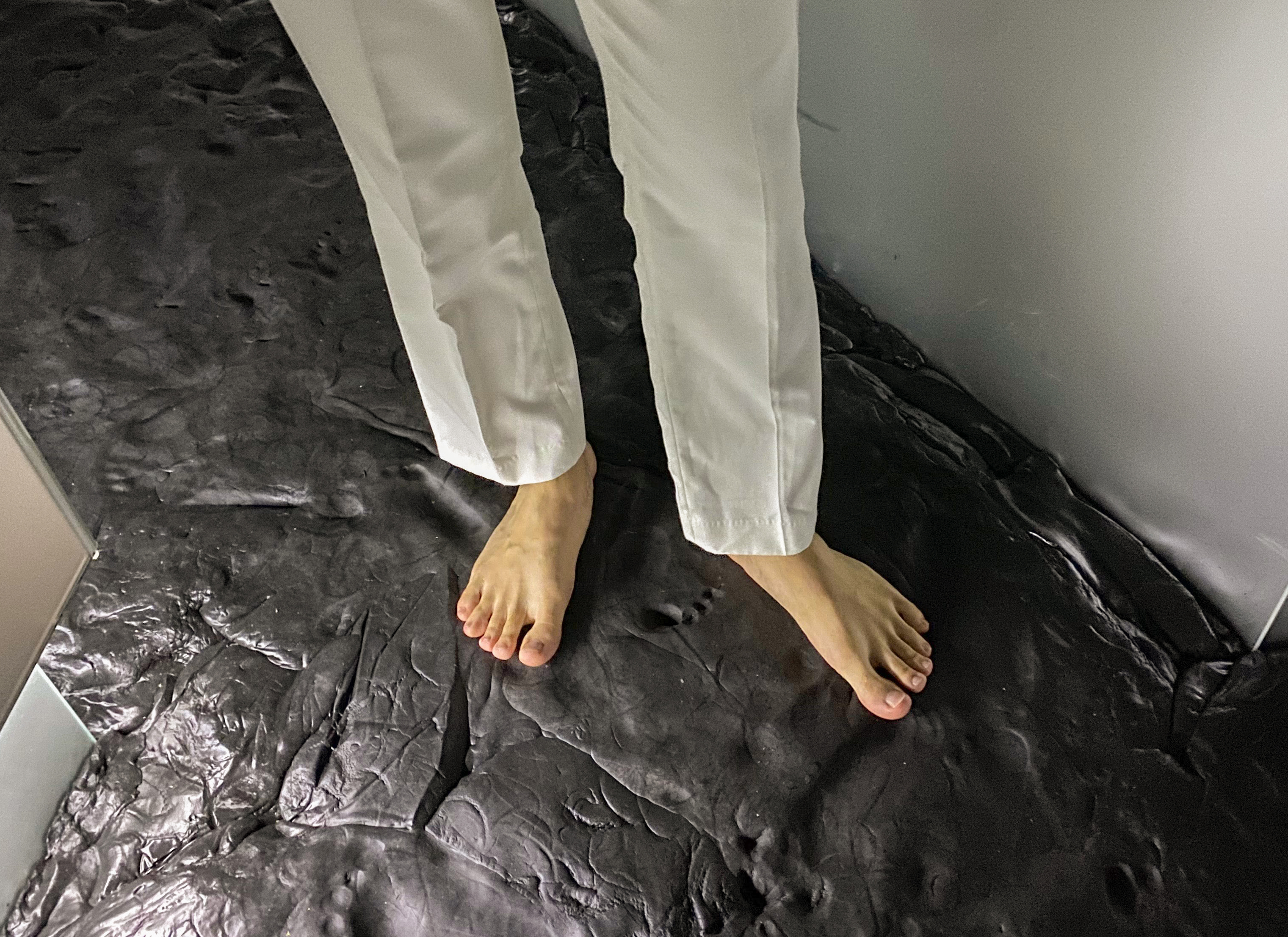 다양한 연출을 통해 시원한 물을 느껴볼 수 있어요. 발목까지 찰랑거리는 물가를 지나면, 새벽녘 이슬을 머금은 것 같이 미세하게 물이 분사되는 복도가 펼쳐져요. 이후 진흙 위를 걷는 듯한 찰흙 바닥을 지나가게 됩니다. 발에 묻지 않는 재질이라 발바닥이나 발가락으로 꾹꾹 눌러보기도 하고, 발자국도 남기며 발끝의 촉감에 오롯이 집중할 수 있어요.