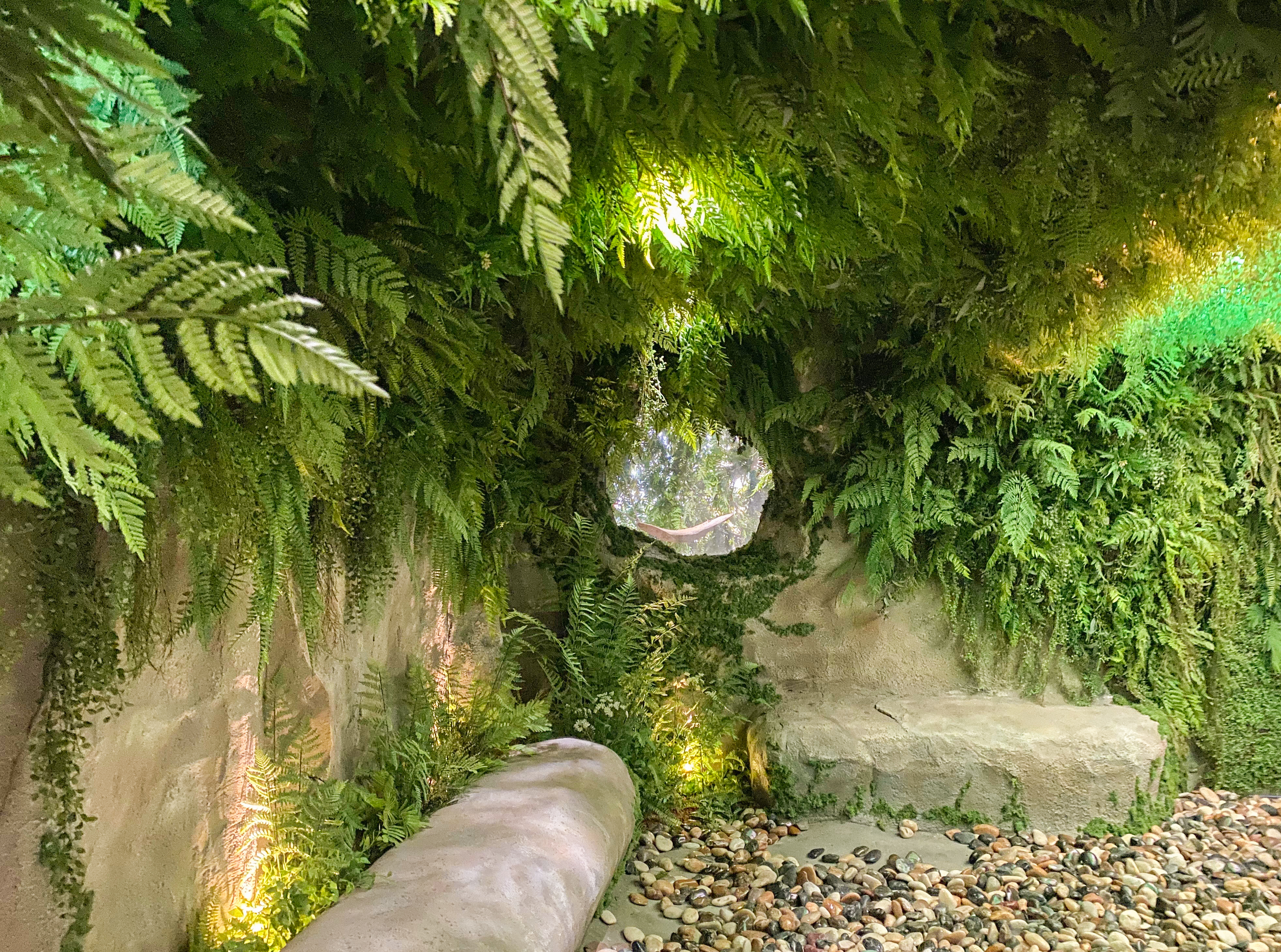 지하 1층 인포 테이블과 벽 역시 거대한 동굴 느낌의 컨셉을 살린 인테리어가 눈에 띄어요. 모든 공간에서 가이드의 설명과 함께 전시를 충분히 느끼고 촬영을 할 수 있도록 시간이 주어져요. 1층에서 루프탑까지 순서대로 관람이 이어지며 인상 깊었던 공간이 있다면 공간별 자율적인 이동도 가능하다고 합니다. 건물 전체를 하나의 우주로 보고 흙과 나무, 자갈과 식물로 가득 채우고 바람과 빛, 소리 등 자연에서 느낄 수 있는 요소들로 완성한 섬세이만의 테라리움을 관람할 준비가 되셨나요?