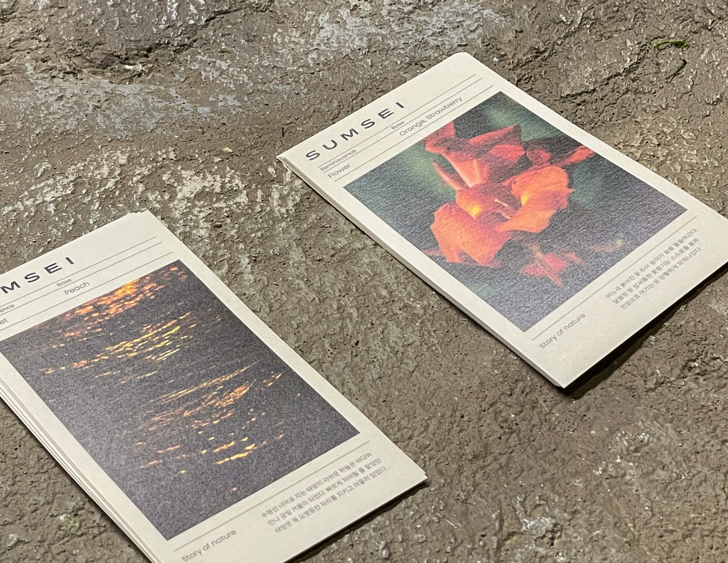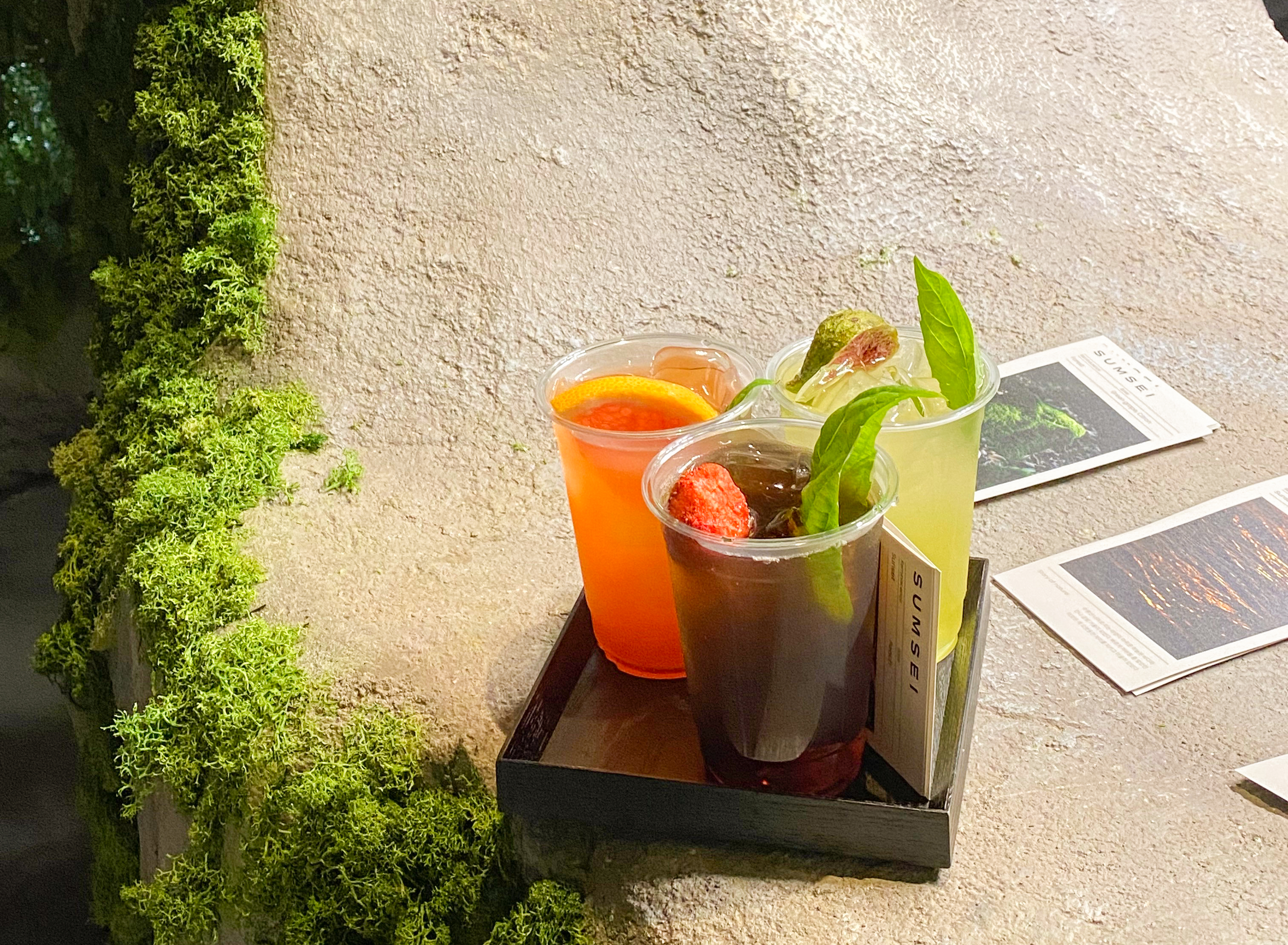 전시에 포함된 음료 1잔은 3층에서 주문이 가능합니다. 커피가 아닌 건강 주스처럼 딸기, 자몽, 무화과 3개 컨셉의 종류가 준비돼 있어요. 요즘엔 오미자와 케일, 오미자차 등이 제공된다고 하는 걸 보니 음료의 종류는 유동적으로 바뀌는 것 같습니다. 펼쳐져 있는 카드를 고르고 음료를 기다리는 동안 4층에서 사진을 찍으며 공간을 즐긴 후, 남은 시간은 3층에서 음료를 마시며 숲속에 있는 듯한 기분을 느끼는 것도 좋을 것 같습니다.