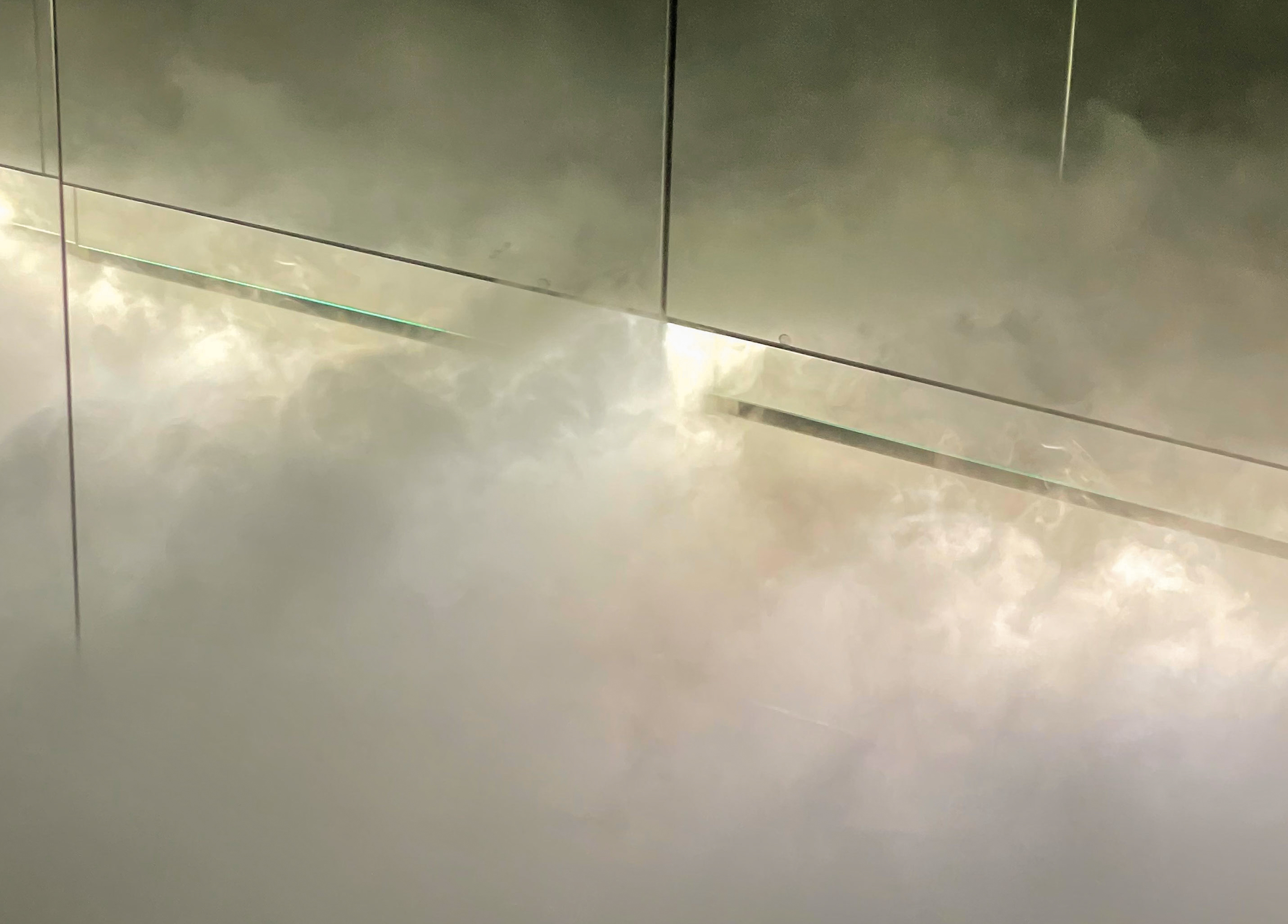 두 번째 공간의 마지막 파트, 삼면이 거울벽으로 둘러싸인 공간입니다. 거울 아래쪽에서 뿜어져 나오는 안개가 발을 감싸며 구름 속에 들어온 듯한 기분이에요. 둘러싸인 거울로 또 다른 내 모습이 비치면서 사진 찍기 좋은 공간인 것 같아요.