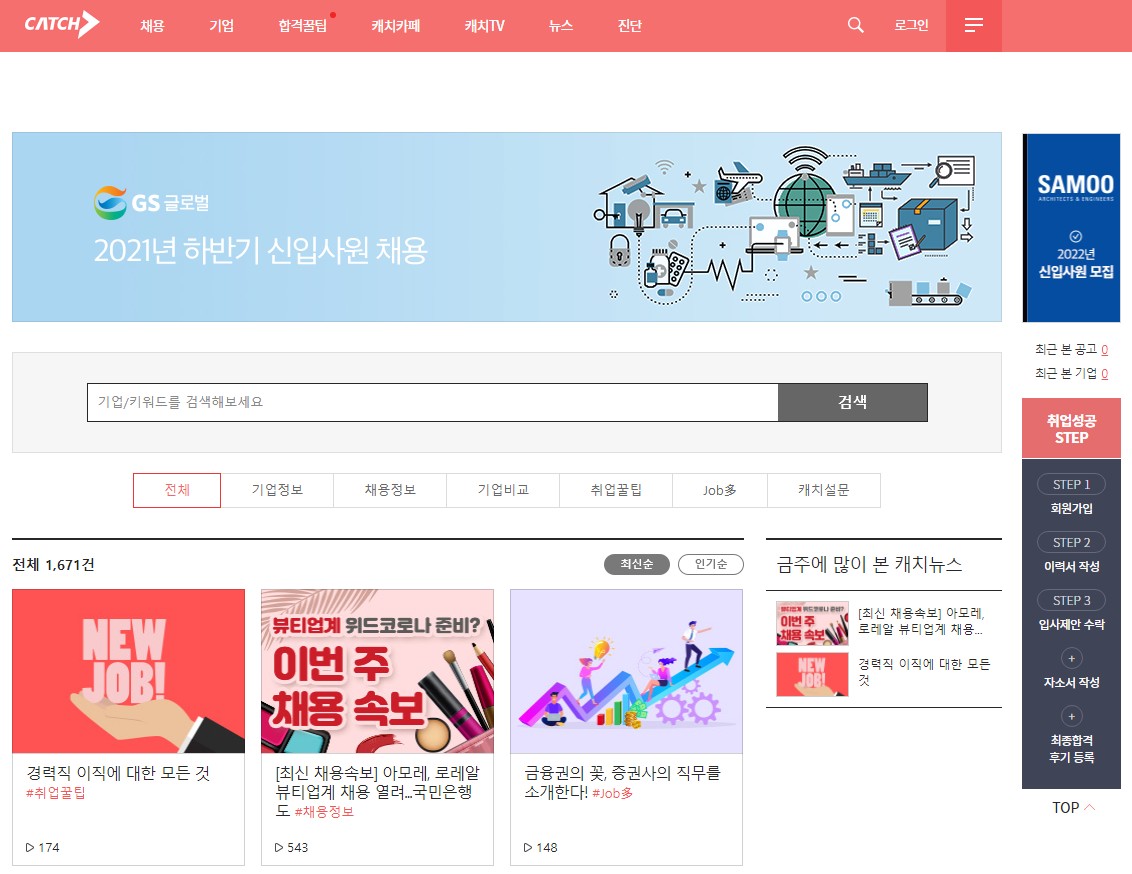 진학사에서 만든 캐치는 수험생, 취준생들에게 꼭 필요한 콘텐츠를 제공해 최선의 진로 선택을 할 수 있도록 돕는 취준생 중심의 취업/기업 정보 사이트입니다. 기업 재무평가, 현직자 리뷰뿐만 아니라 시사 상식 등 실제 도움이 되는 정보를 쉽고 재미있게 제공하고 있습니다.