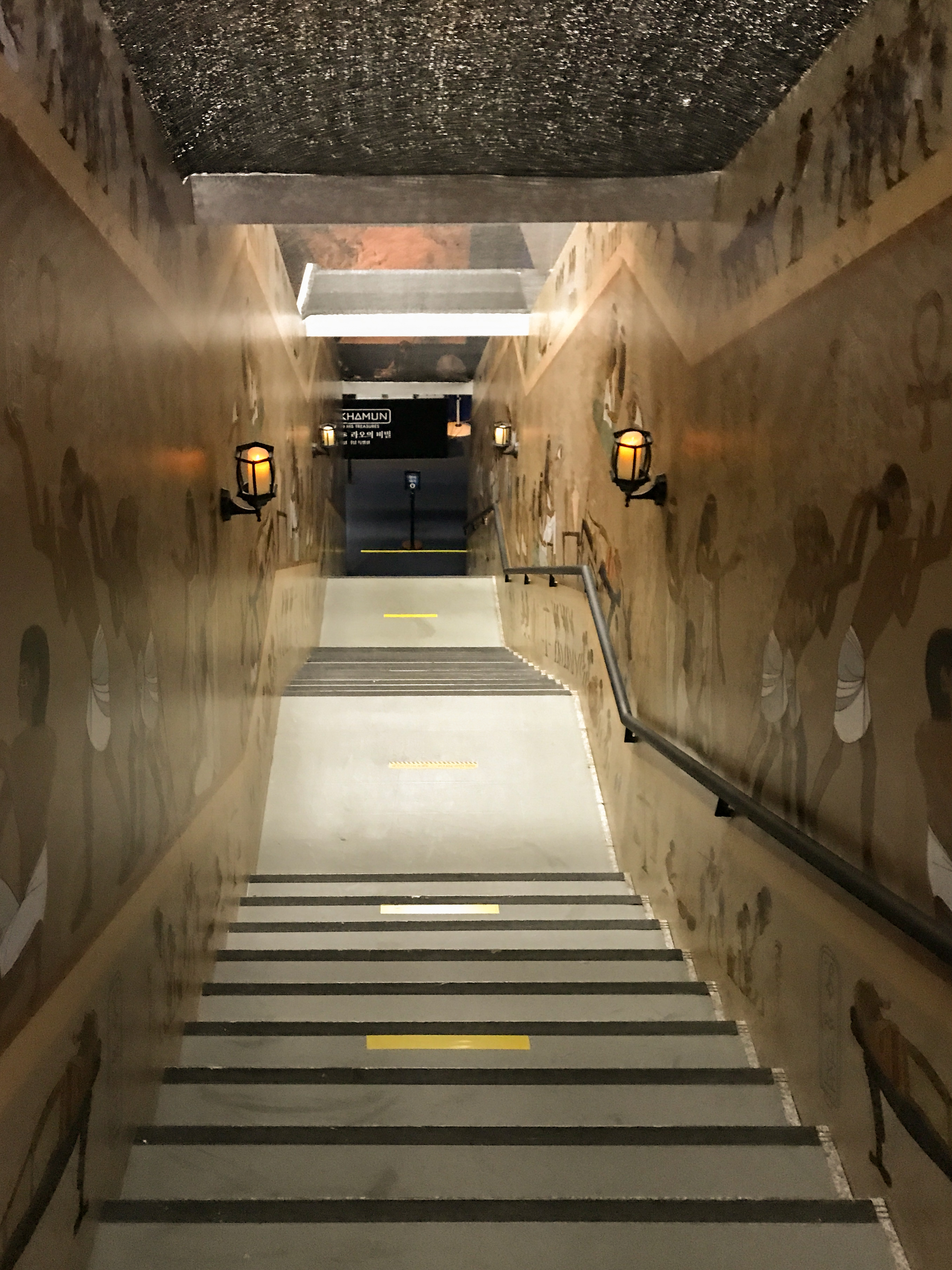 이런 노력으로 진품을 보는 듯한 재미를 느낄 수 있는데요. 이제 지하로 내려가는 계단을 통해 투탕카멘의 무덤으로 들어가 볼게요.
