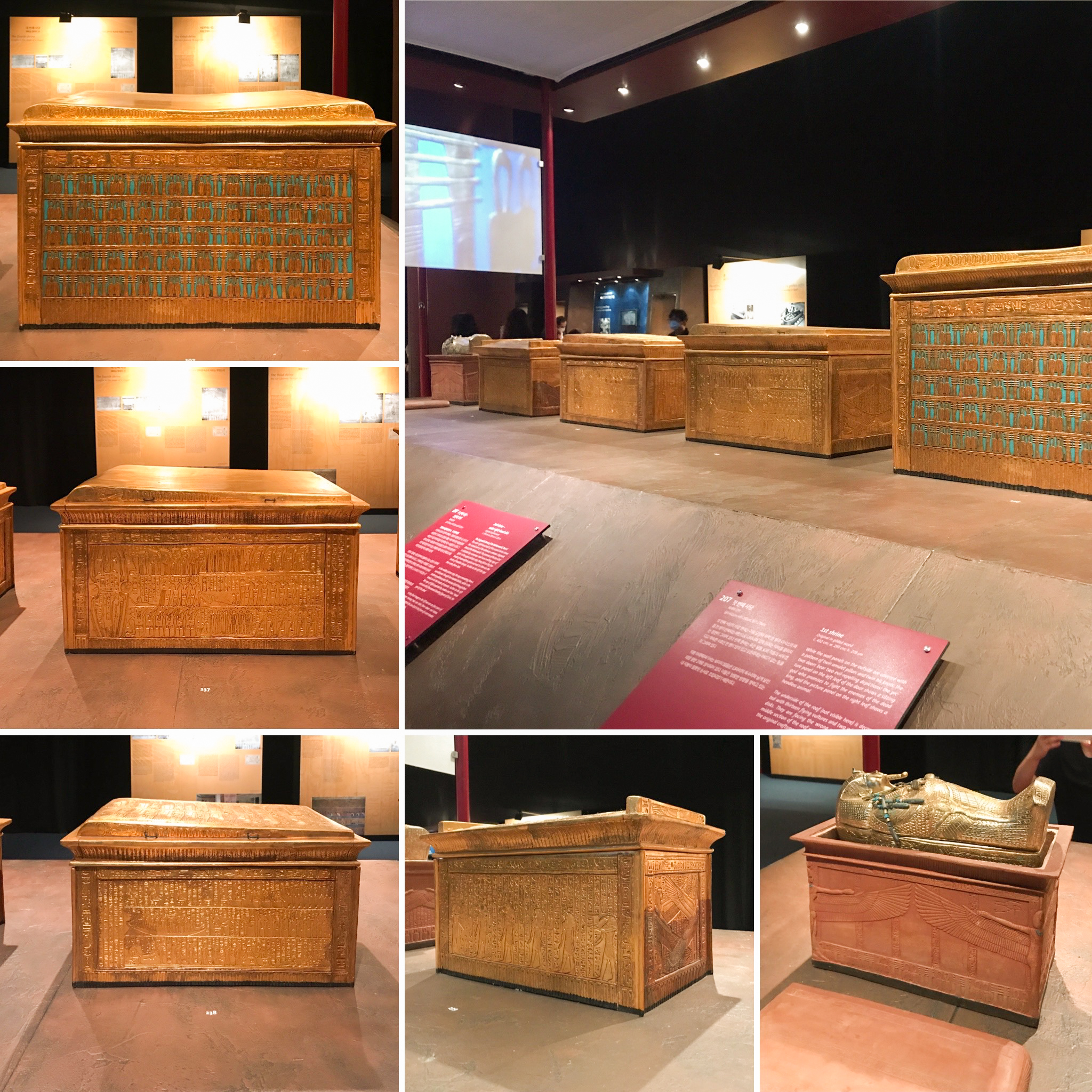 섹션 #3의 주제는 ‘황금 가면과 부장품들’이에요. 네 개의 사당과 3중 관의 형태를 살펴볼 수 있고, 투탕카멘의 황금 가면을 비롯해 관에서 나온 수많은 보석과 부적이 전시되어 있어요.