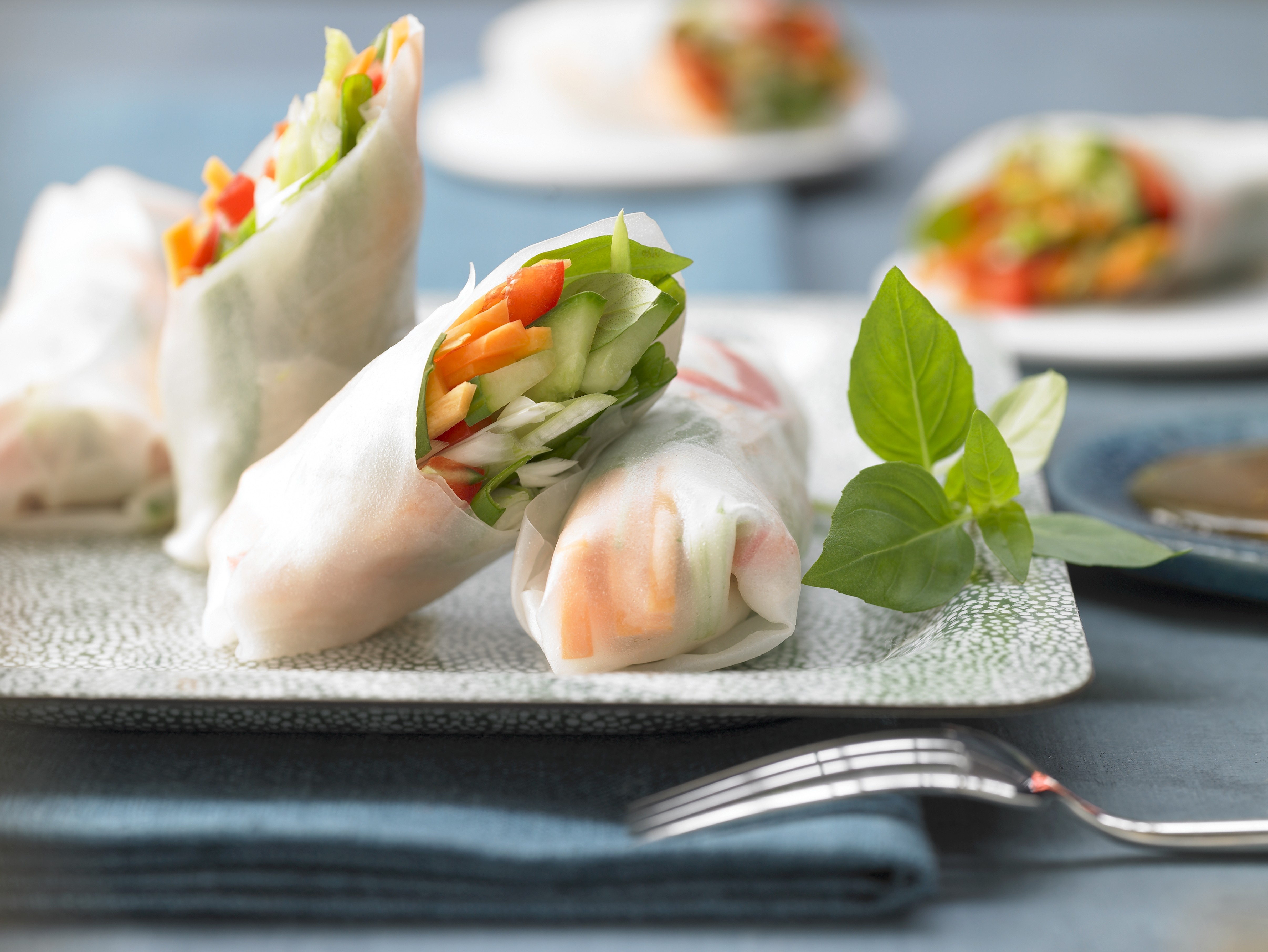 산뜻한 요리가 필요하다면 요즘 유행하는 포두부나 라이스페이퍼가 딱이죠. 아삭한 맛이 좋은 채소와 잘 삶은 닭가슴살, 맛살 등을 가늘게 썰어 모두 섞어 한입에 쏙 들어가는 롤을 만듭니다. 비슷한 재료를 준비해 김에 싸서 내도 좋은데, 김말이는 쉽게 눅눅해지죠. 재료를 따로 준비해 먹는 사람이 원하는 대로 만들어 먹을 수 있게 하는 게 좋습니다. 김말이를 준비한다면 날치알이나, 구운 명란과 잘게 썬 오이와 양파도 조금 준비해보세요. 롤과 함께 먹을 소스는 앞접시에 각자 덜어 먹을 수 있게 따로 준비해 둡니다. 실은 김밥이야말로 최고의 핑거푸드이지만 식상할 수 있으니 꼬마김밥을 만들어 달걀물에 부쳐 반으로 썰어 준비해보세요.