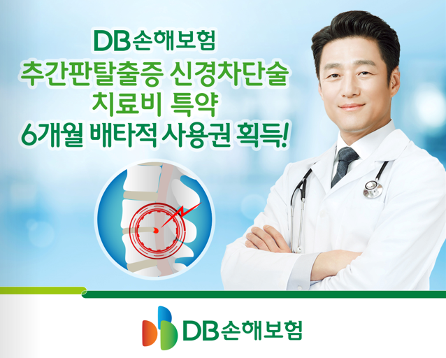 DB손해보험(대표 김정남)은 12월 1일 출시한 ‘참좋은운전자상해보험’에 탑재된 ‘추간판탈출증 신경차단술 치료비 특약’에 대하여 6개월의 배타적 사용권을 획득했다고 지난 12월 29일 밝혔다.