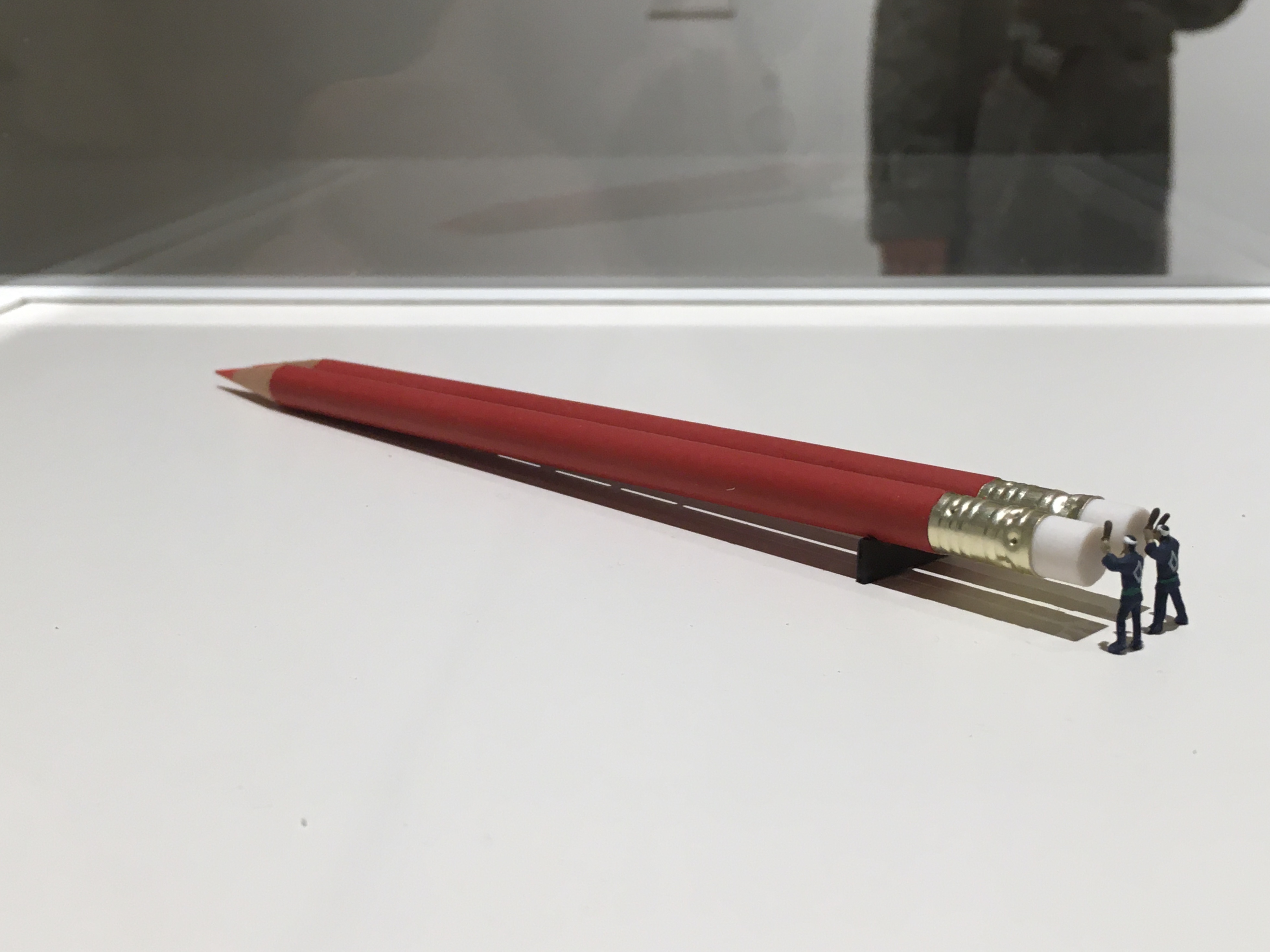 타나카 타츠야의 상상력은 어떤 제약도 없는 것 같은데요. 말 털로 만든 구둣솔은 농부가 수확하는 경작지가 되고, 연필에 달린 지우개는 ‘오오다이코’라는 일본의 전통 북이 되었어요.