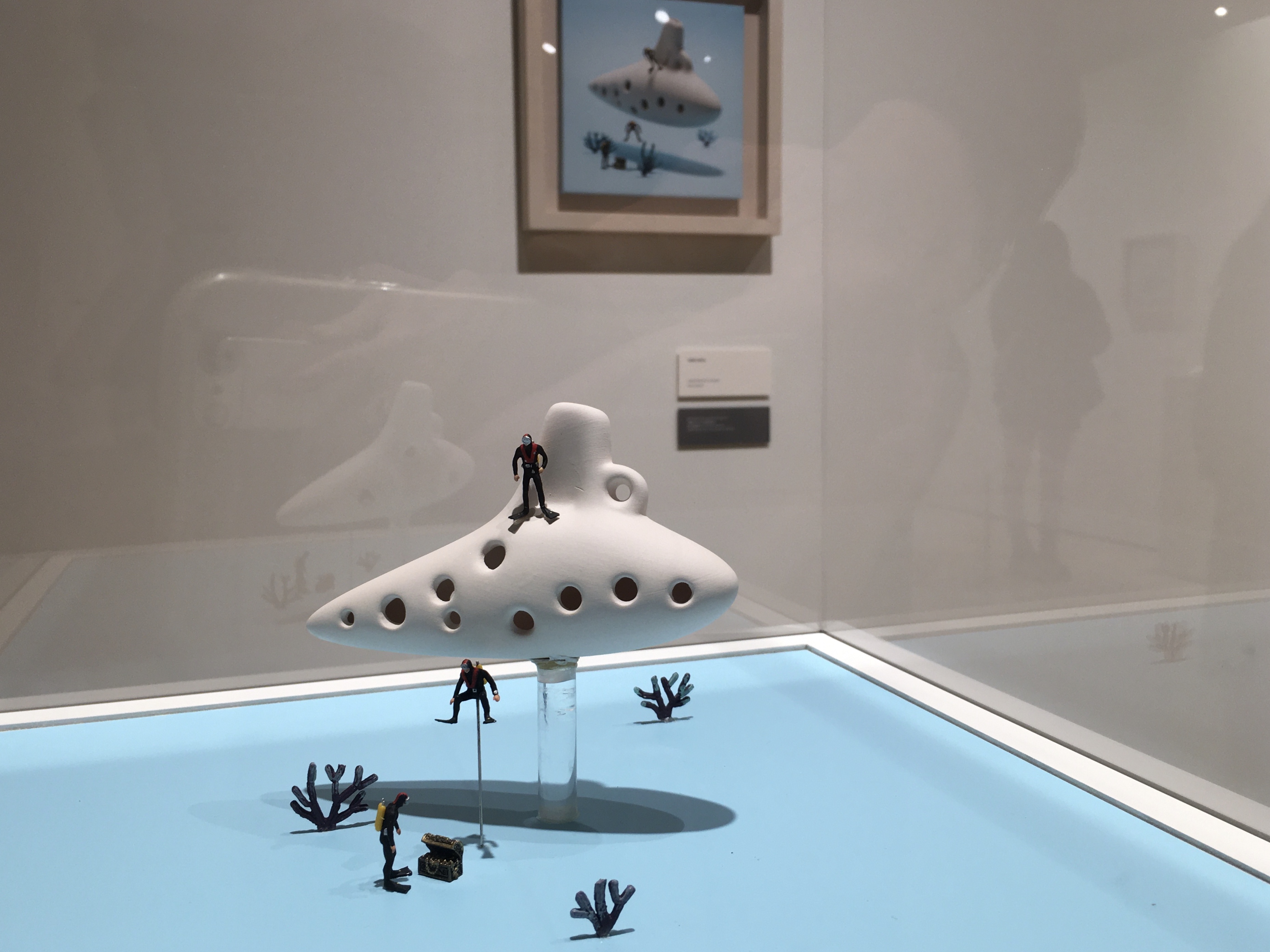 언뜻 찻잎이 잘 우러나는 모습을 표현한 작품처럼 보이지만, 작품 제목을 곱씹어 보면 타나카 타츠야는 찻잔 위에서 찻잎이 곧추뜨도록 낚시하는 모습의 미니어처를 만든 것이죠. 작가의 센스가 돋보이는 작품입니다.