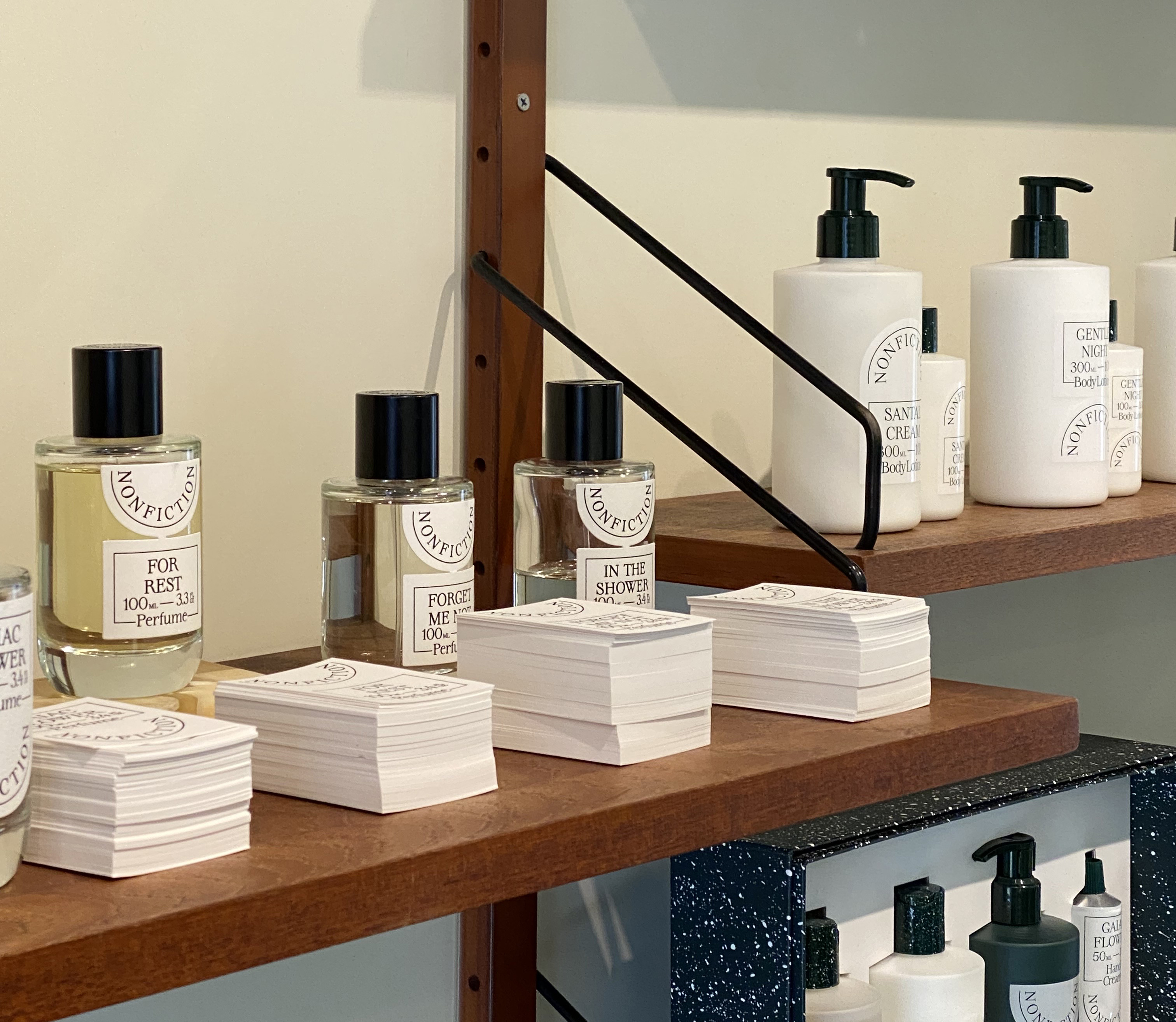 제가 방문했던 때는 크리스마스&연말 시즌이다 보니 예쁘게 포장된 세트 상품들이 참 많이 준비되어 있었어요. 논픽션은 스튜디오 콘크리트 대표 차혜영 디렉터가 런칭한 브랜드로 핸드크림으로 시작해 핸드&바디 워시와 로션, 향수 까지도 선보이고 있는 브랜드에요. 가격대가 리즈너블하기도 하고, 포장이 감각적이어서 그런지 런칭과 동시에 부담 없이 건넬 수 있는 선물로도 상당히 인기를 끄는 브랜드죠.