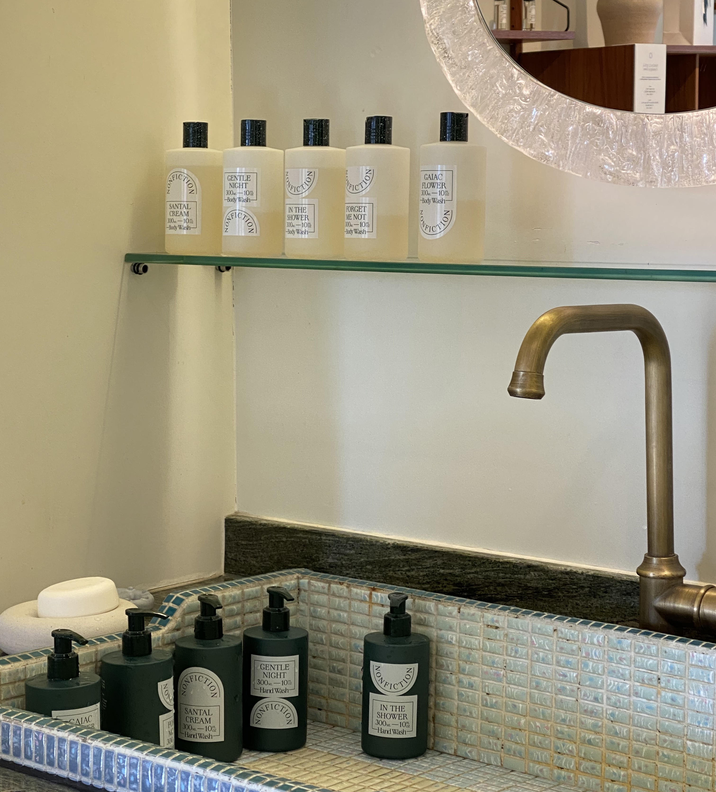 열체크를 하고 들어가면 2층 쇼룸에서 가장 먼저 수전에서 논픽션 제품들로 손을 씻고 핸드크림을 바르며 제품 경험을 할 수 있게 해두었어요. 2층에서는 직접 구매가 가능한데, 이때 카카오톡 플러스 친구를 추가하면 5% 할인을 해준다고 하길래 저도 이 쿠폰을 이용해 구매했답니다 :) 구매하시고 별도로 메시지를 써서 선물하고 싶다면 3층에 마련된 무인 쇼룸에 올라가 편지를 쓸 수 있도록 펜과 테이블이 마련되어 있어요.