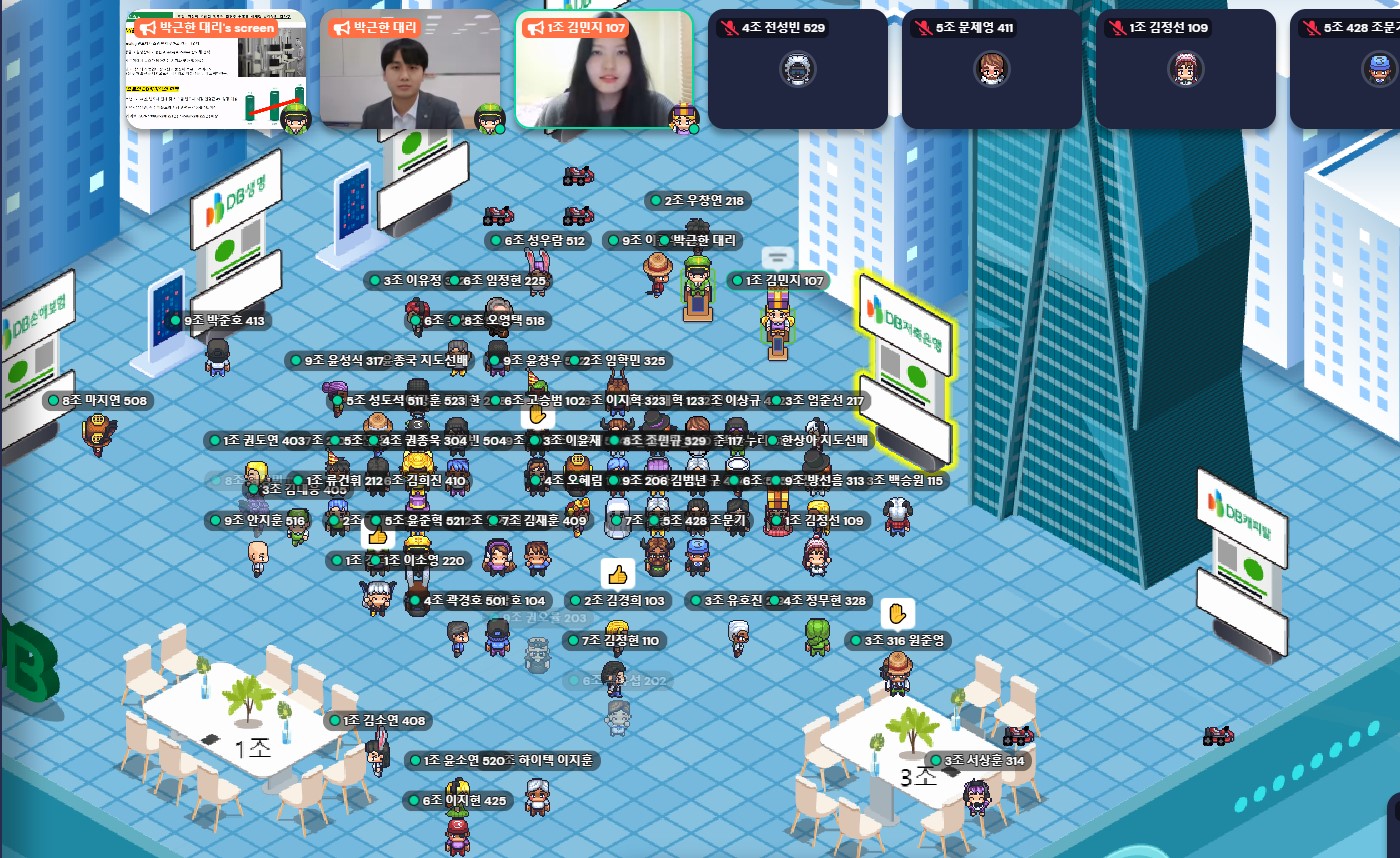 한 과장은 “메타버스 공간에서 실제 컨퍼런스에 참여하듯 강의실을 이동하는 재미요소까지 세심하게 기획한 프로그램 중 하나인데요. DB그룹에 입사한 신입사원이라면 누구나 충분한 능력과 서로에게 배울 점이 있다는 확신이 있어 기획할 수 있었던 프로그램입니다.”라고 소개했다.