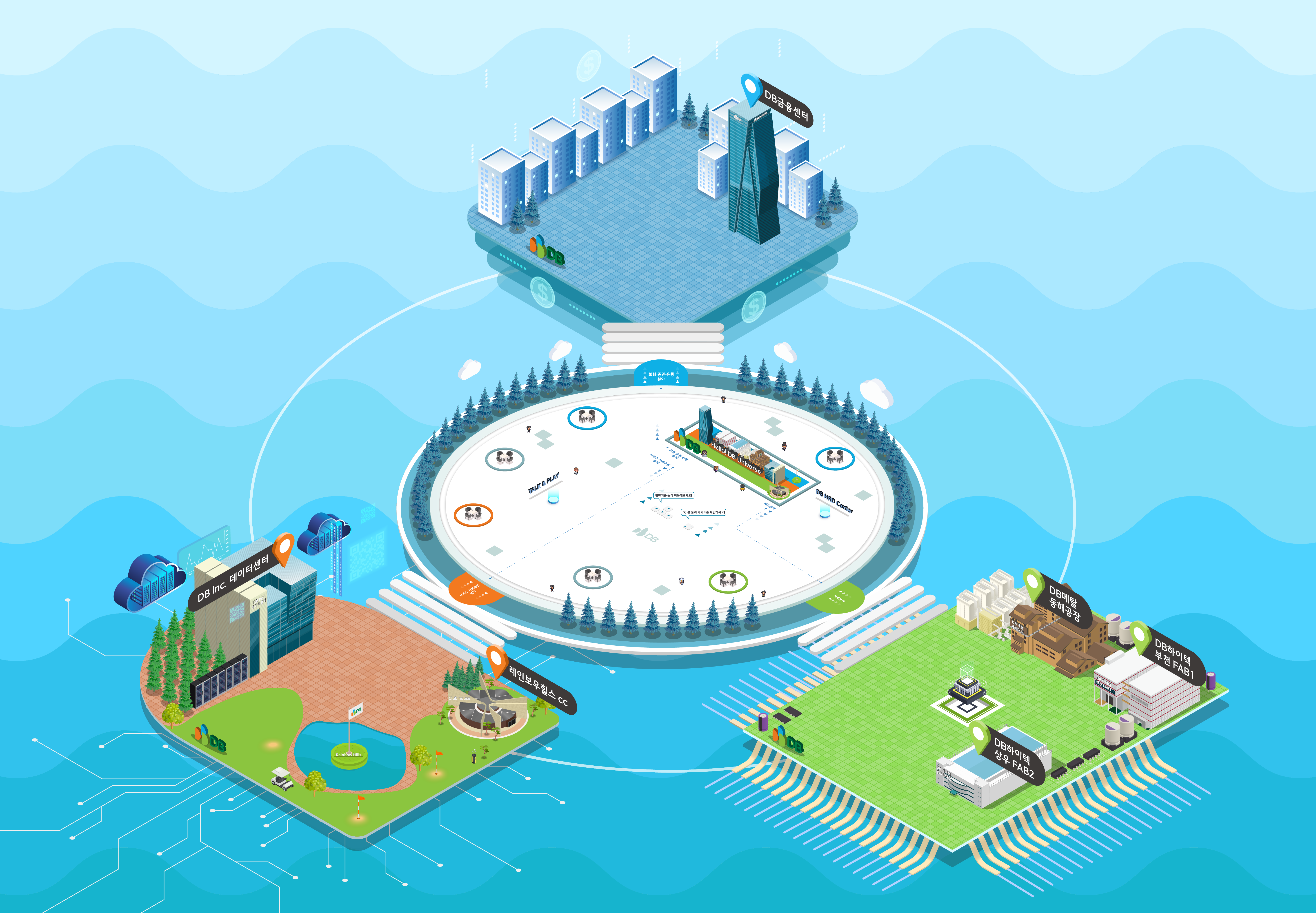 한 과장은 “DB그룹의 금융네트워크를 상징하는 DB금융센터를 시작으로 DB하이텍의 부천과 상우공장, 메탈의 동해공장, DB Inc.의 데이터센터, DB월드의 레인보우힐스 등을 시각화 하여 공간을 입체적으로 구현했습니다.”라고 설명했다.