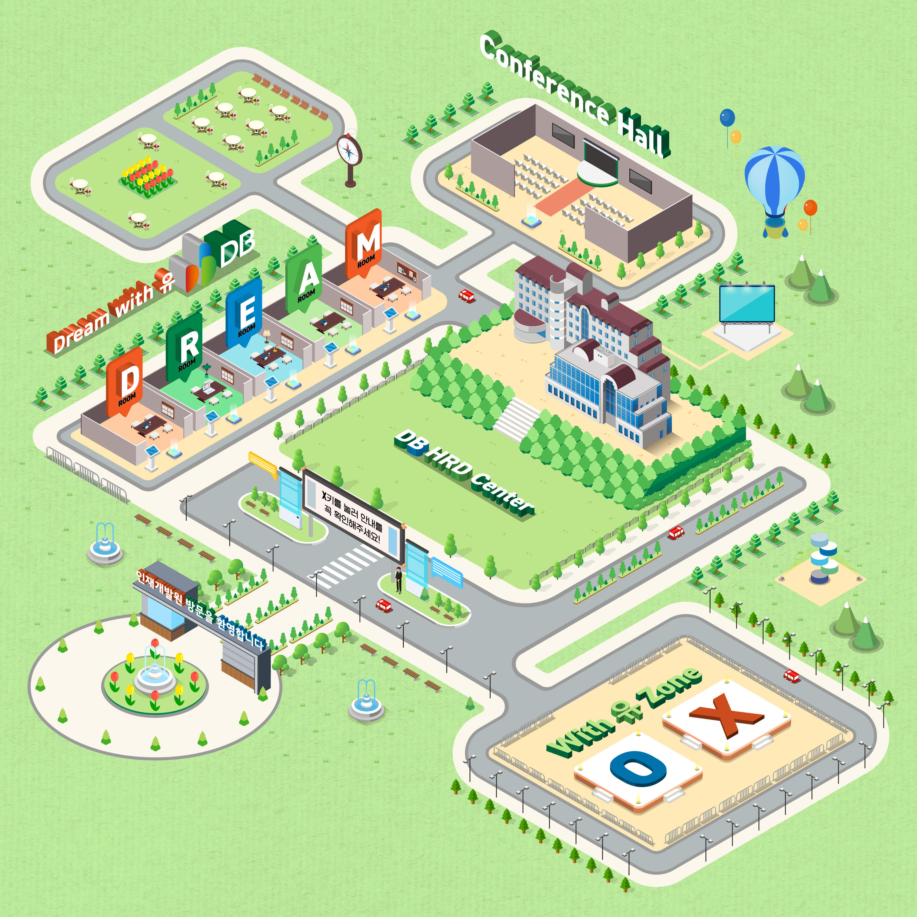 2022년 그룹 신입사원 입문교육을 위해 DB인재개발원이 ‘게더타운(gather.town)’에 구축한 메타버스 공간은 ‘DB Universe’라고 이름 붙여졌다. 가상 공간이지만 DB인재개발원과 DB그룹의 여러 사업분야, 관계사를 실재감 있게 체험할 수 있도록 구성했다.