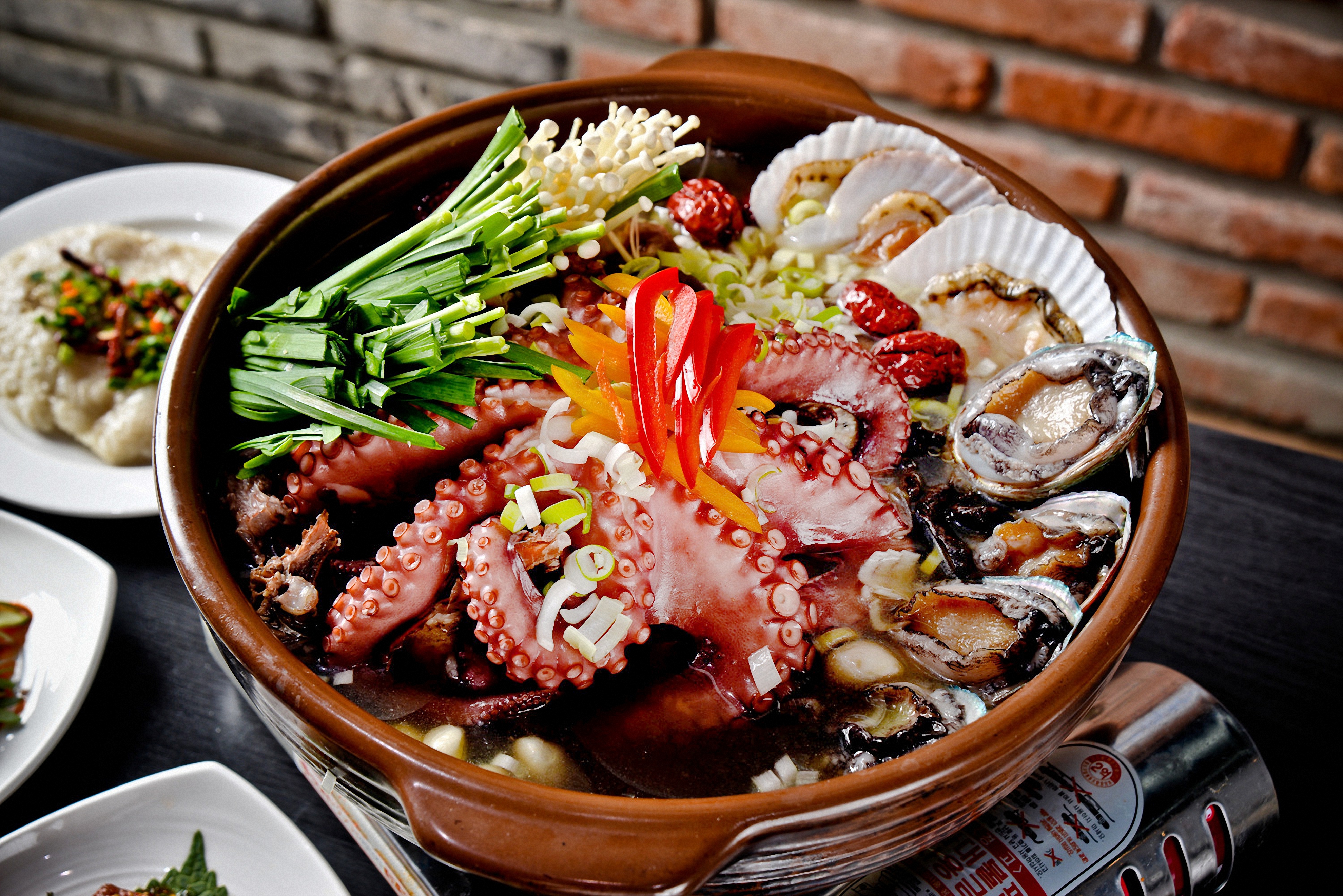 해산물은 계절에 따라 다양하게 준비할 수 있겠죠. 국물 맛을 좋게 해주는 바지락이나 홍합, 먹을 것이 많고 보기에 좋은 키조개, 가리비, 새조개, 백합 등을 섞어 준비해 봅니다. 낙지의 친구들인 주꾸미와 문어 그리고 오징어, 갑오징어를 넣을 수 있죠. 새우도 통통한 중하나 대하를 준비하면서 국물 맛을 시원하게 해줄 잔 새우를 조금 넣어도 좋습니다. 구할 수 있다면 꽃게나 소라 같은 것도 해신탕에 곁들여요. 요즘에는 바닷가재를 넣기도 하거든요. 바닷가재가 올라간 해신탕이라니 맛도 좋아지겠지만 보는 재미가 쏠쏠하겠어요.