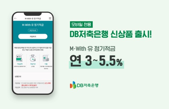또 DB저축은행은 금융의 비대면화 추세에 맞춰 모바일 이용자를 위한 상품을 속속 선보이고 있는데, 고객 호응도 뜨겁다. 3월 초 출시한 ‘모바일 전용 예금상품 'M-With 유 정기적금'은 특별한 홍보나 광고 없이도 입소문이 퍼지면서 출시 3일 만에 계약고 300억 원을 모두 채웠다.