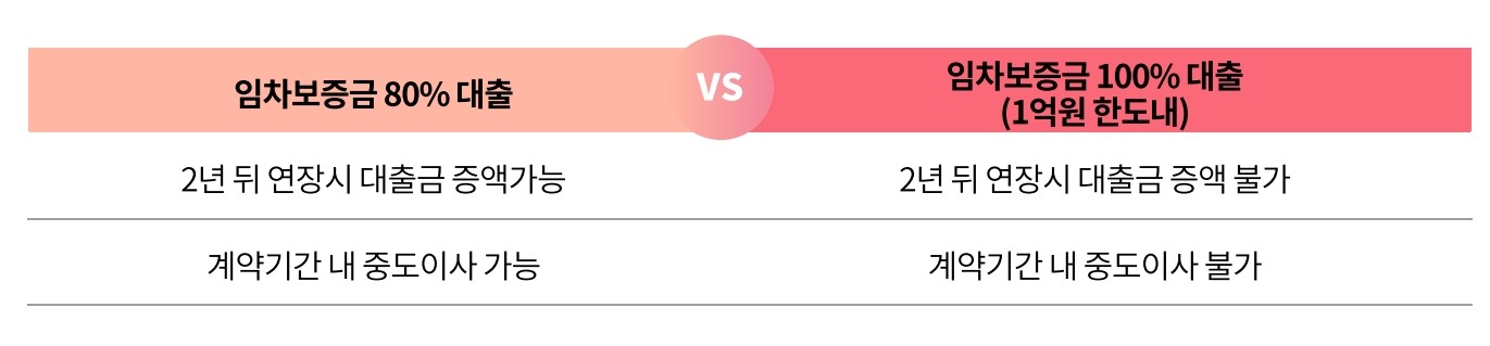 신청자들은 100% 대출을 희망하지만, 현실적으로는 은행 심사도 까다롭고 집 찾기도 어렵다고 해요. 그리고 집주인으로부터 채권양도 확인을 받기가 쉽지 않습니다. 하지만 100%를 대출받지 못했다고 실망할 필요는 없어요. 100% 대출은 계약 기간 중에 이사할 수 없지만 80% 대출은 중도 이사를 할 수 있습니다.