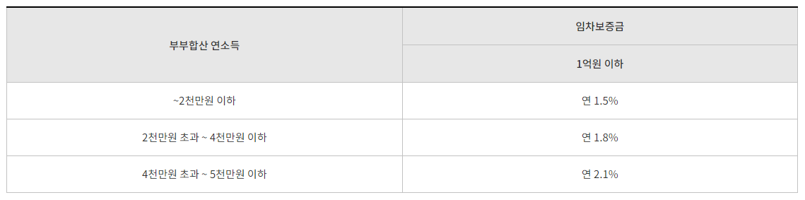 대출 대상은 만 19~34세 이하의 외벌이 연 소득 3,500만 원 이하 또는 부부 합산 연 소득 5,000만 원 이하의 무주택 세대주로 중소중견기업 재직자예요. 이름 때문에 중소기업 취업 청년만 지원할 수 있을 것 같지만, 청년 창업자도 대출 대상에 포함됩니다. 기술보증기금의 ‘청년창업기업 우대 프로그램’ 또는 신용보증기금의 ‘유망 창업기업 성장 지원 프로그램’, ‘혁신 스타트업 성장 지원 프로그램’, 중소 벤처기업 진흥 공단의 ‘청년 전용 창업 자금’을 지원받은 창업자라면 이용할 수 있어요.