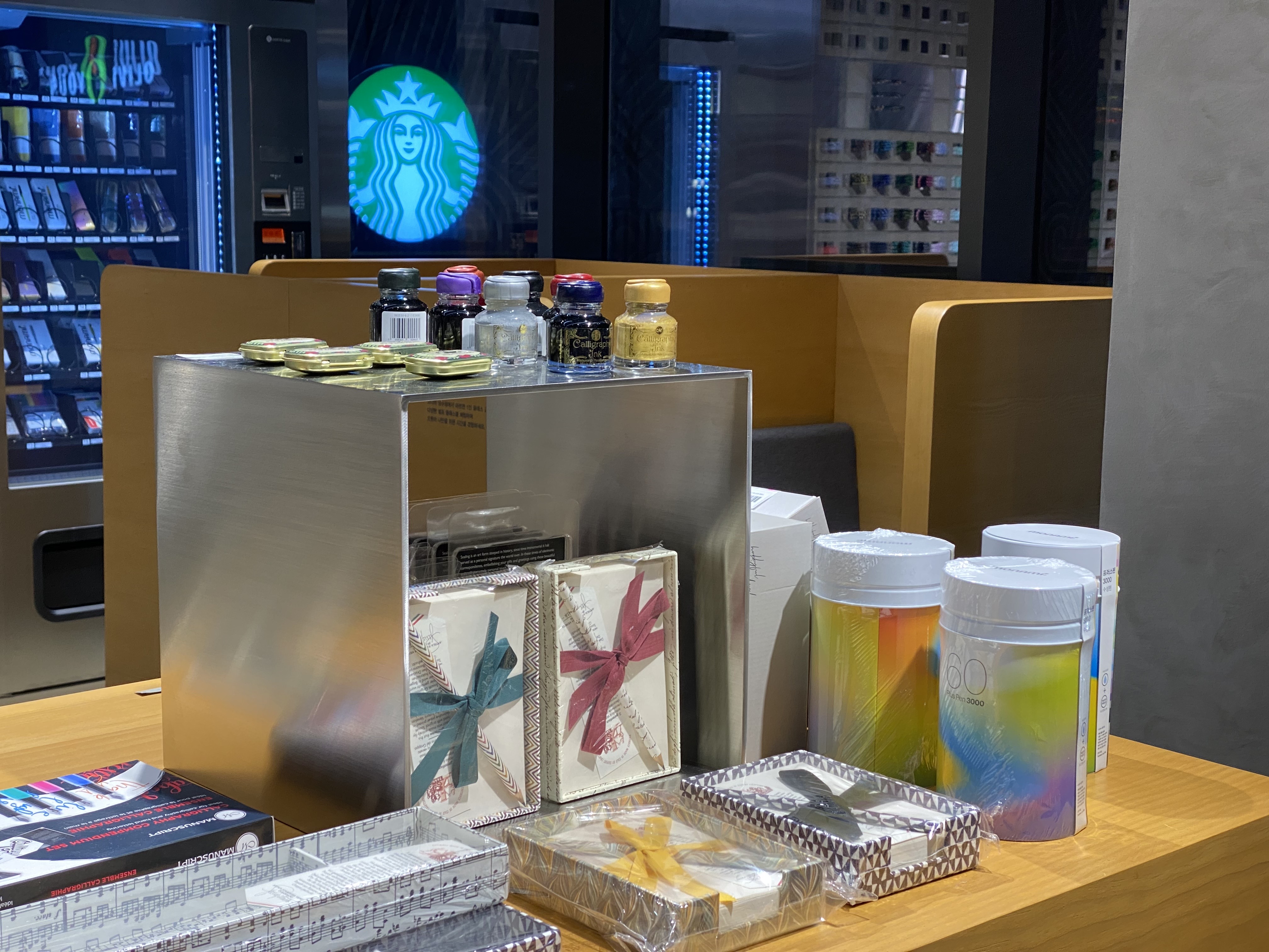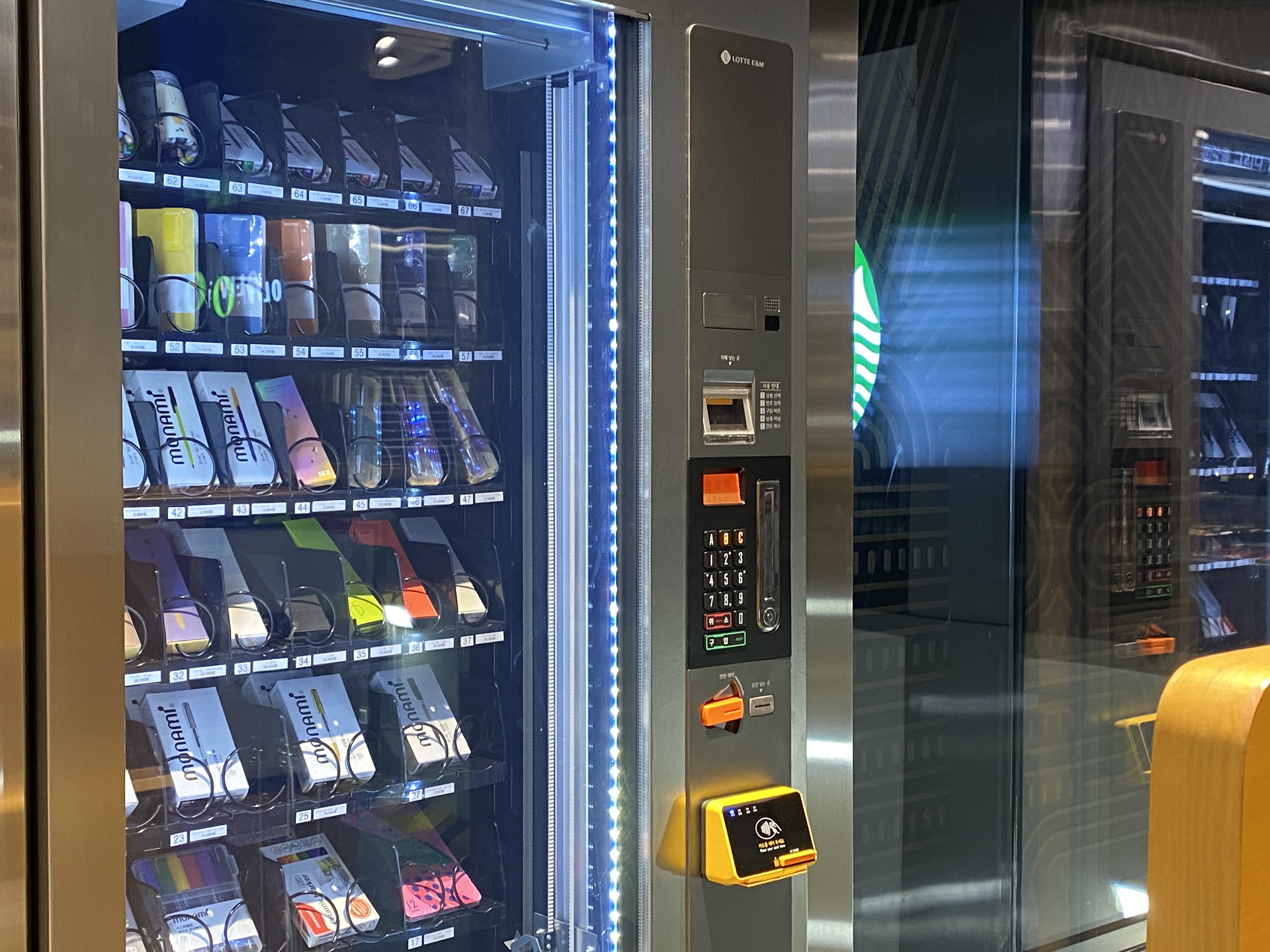 마지막으로 나가기 전에 눈길을 사로잡았던 커다란 자판기! 이곳에서도 모나미의 도장, 다이어리, 패치, 데코 스티커, 필통 등 다양한 굿즈들을 자판기로 구입할 수 있습니다. 하나부터 열까지 현대적으로 재해석해 진화한 모나미의 공간을 소개해 드렸습니다. 성수동으로 나들이 갈 일이 있다면, 요즘 핫한 성수 모나미 스토어, 꼭 한번 들러보세요 :) 그럼 다음에는 또 새로운 소식으로 찾아올게요!