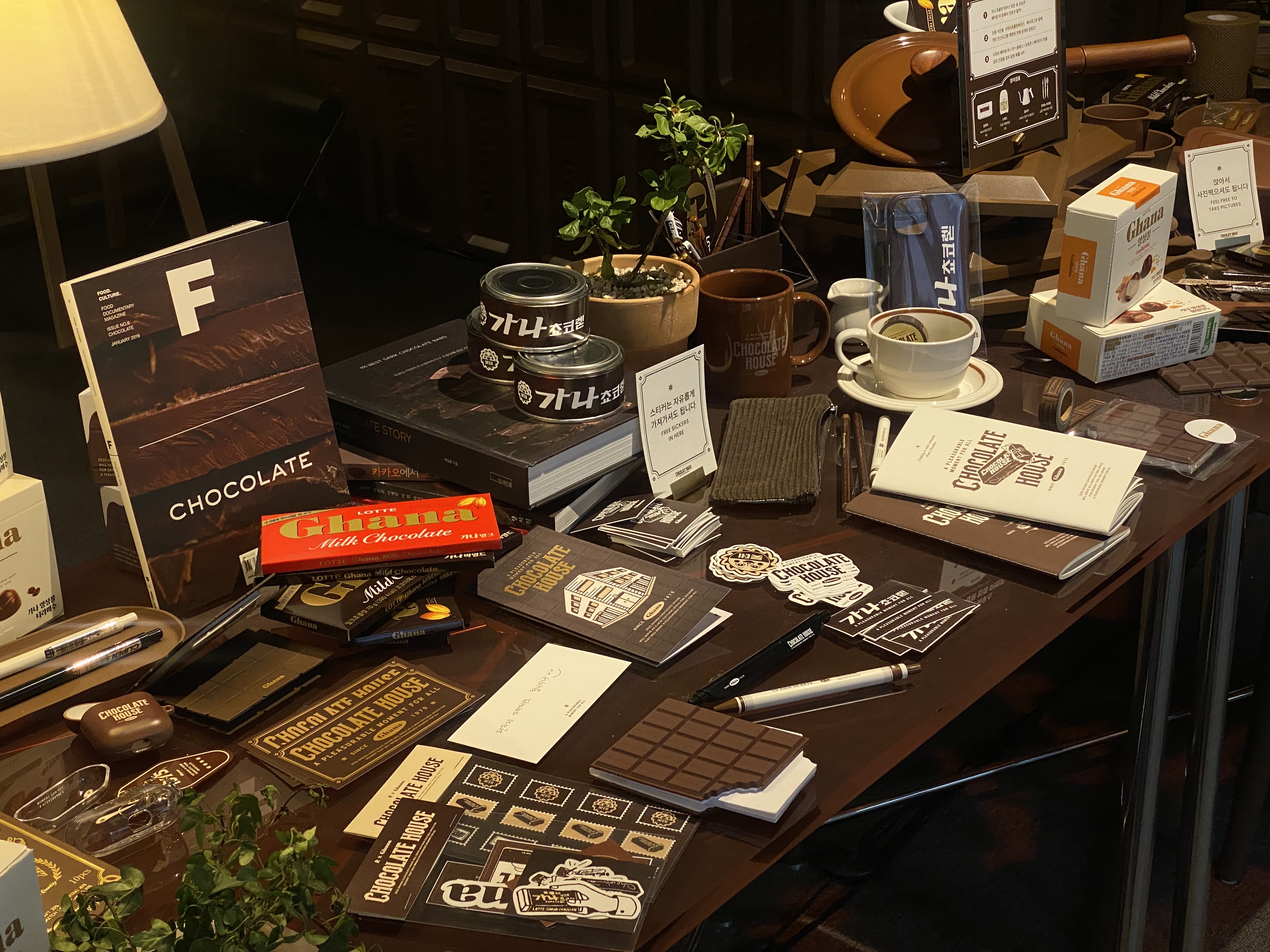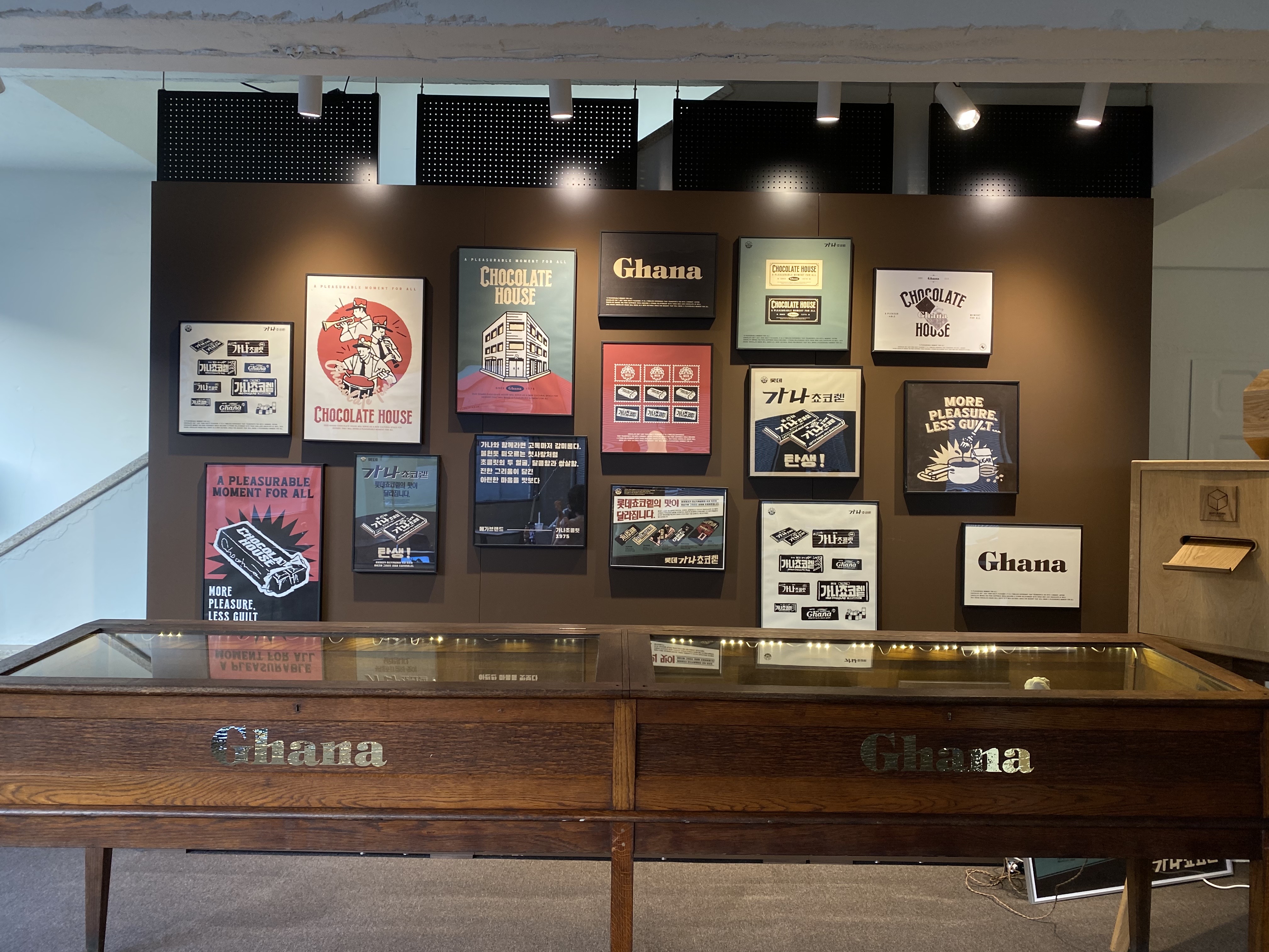 카페 공간 곳곳에는 가나 초콜릿 바 시절부터의 패키지들이 전시되어 있어서 구경하는 재미도 상당히 쏠쏠했답니다. 재구성한 초콜릿 모양 카드와 엽서, 귀여운 초코 컵과 티셔츠까지 굿즈를 쇼핑하는 재미도 느낄 수 있었는데요. 이 공간에 앉아서 초콜릿을 만드는 것처럼 포토존으로 이용해도 된다고 하더라고요. 재미있는 사진을 남기고 싶다면 초콜릿 하우스 구석구석 숨어 있는 여러 공간들을 찾아보세요.