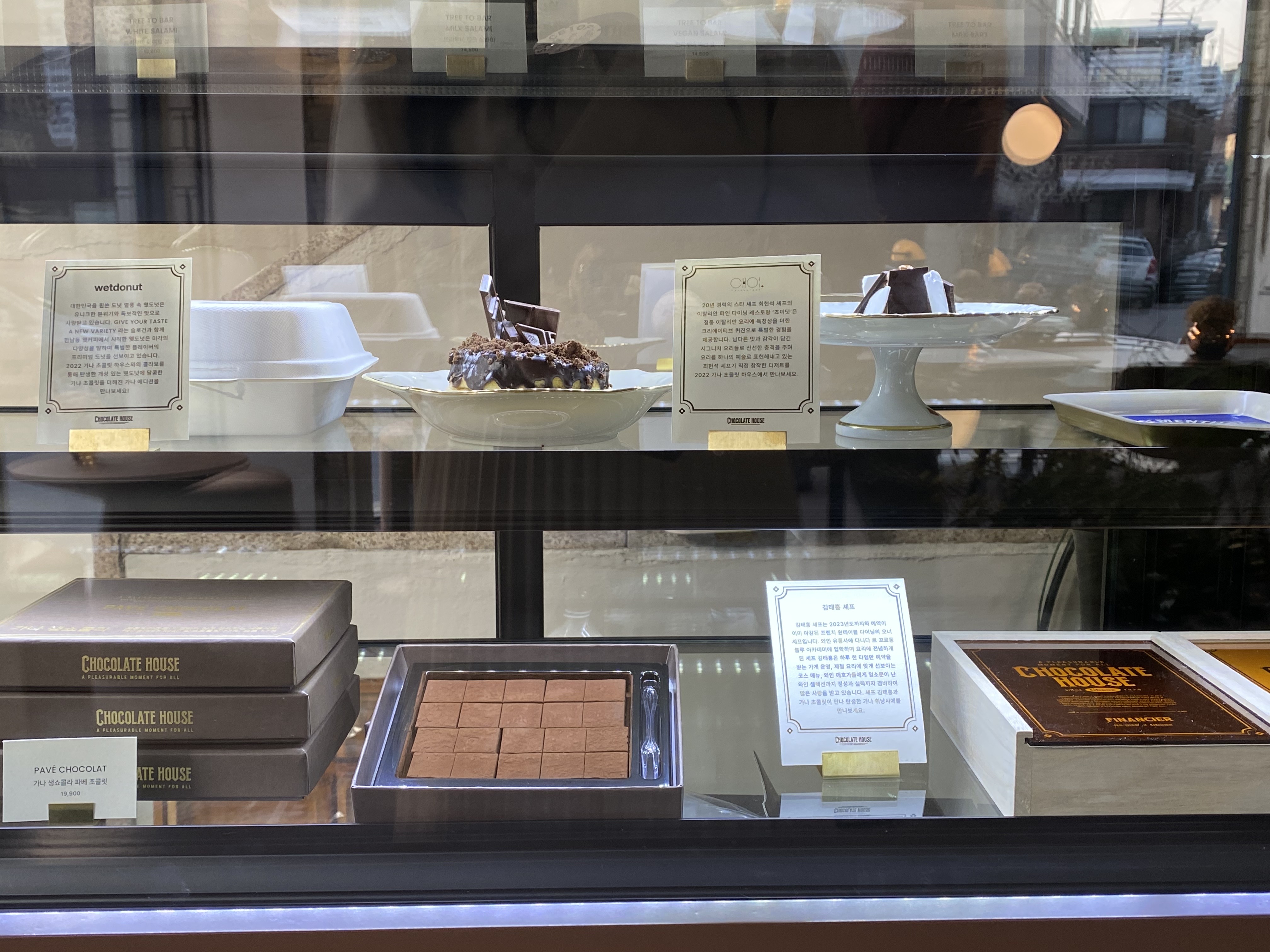 벽면 가득 퍼즐처럼 붙어 있는 네모네모 한 것들, 초콜릿 모양이 맞답니다. 초콜릿 공장에 흘러 들어간 것처럼 어느 곳을 보아도 초코 컨셉에 충실한 오브제들을 볼 수 있는데요. 초콜릿 하우스에서는 오픈 기간 동안 DIY 초콜릿 바 만들기, 5코스의 초콜릿 디저트 페어링 코스 등의 프로그램이 준비되어 있고, 이 외에도 예약을 하지 않고 이용할 수 있는 카페로 운영되고 있다고 해요. 실제로 4월 19일에 오픈하자마자 4월 모든 클래스의 타임이 완판되었었는데요. 5월은 매주 목요일 오후 1시에 클래스 예약을 받고 있어요.