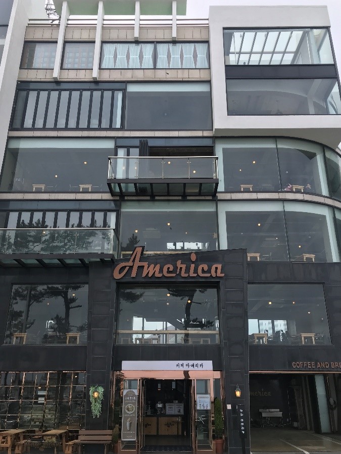 '커피 아메리카'는 해변과 가깝고 통유리가 넓어 안목 해변에서 바다 경치가 가장 좋은 카페로 손꼽혀요.