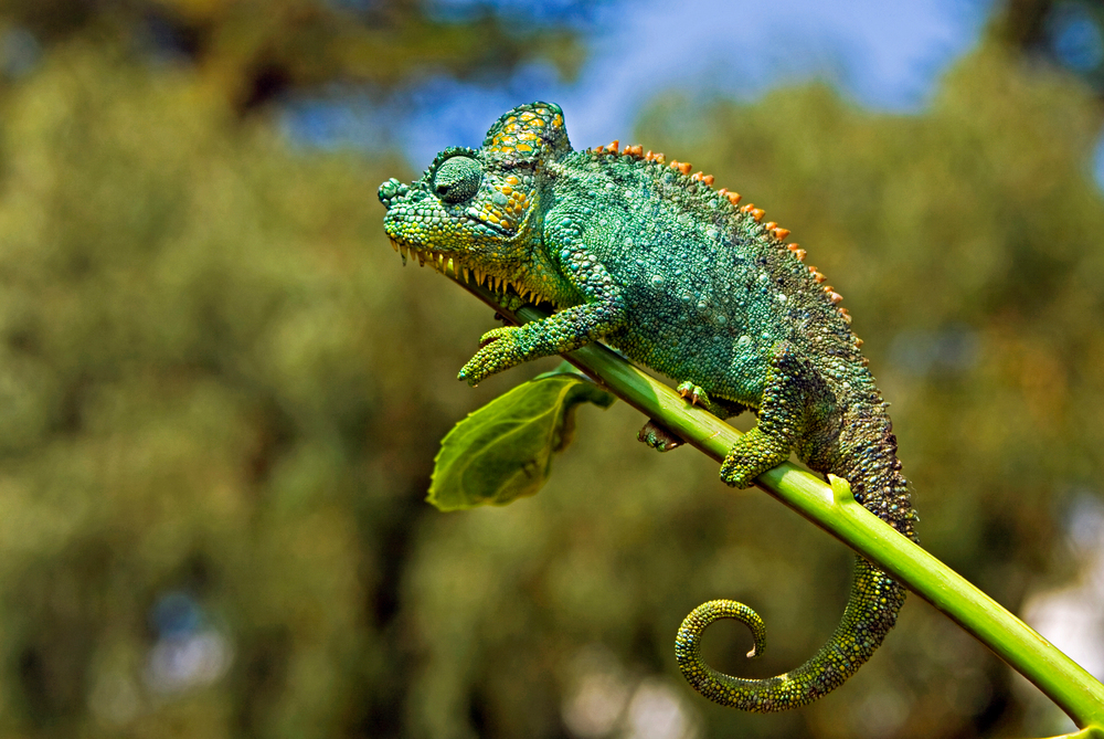 그렇다면 두 눈동자를 자유롭게 독립적으로 움직이는 카멜레온은 뭘까요? 놀랍게도 카멜레온의 두 눈은 다른 역할을 합니다. 한쪽 눈은 주변을 살피고 나머지 한쪽 눈은 목표로 하는 지점을 계속 추적하는 용도로 사용합니다.