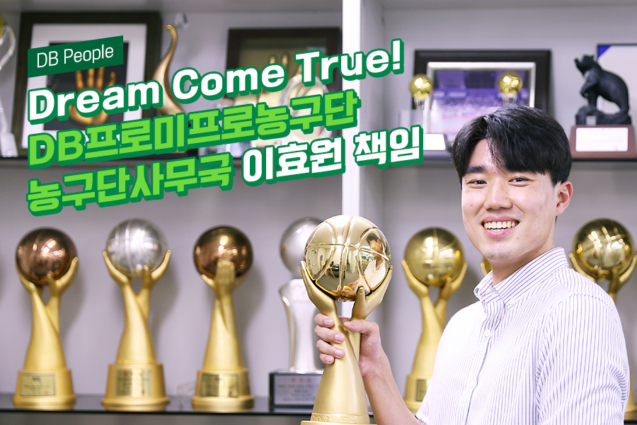 자기가 좋아하는 스포츠 구단에서 일하는 것, 상상만 해도 즐거운 일이 아닐까 하는데요. 그 꿈을 이룬 사람이 있어 소개해 드릴까 합니다. 2005년 그 역사를 시작한 DB프로미 프로농구단은 5번의 정규리그 우승과 통합우승 3회를 달성한 한국 프로농구 명문팀이자 DB그룹의 얼굴이라고 할 수 있습니다. 이렇게 명문팀이 될 수 있었던 건 눈에 보이지 않게 선수단을 지원하고 대외적으로 많은 홍보를 하고 있는 프로농구단 사무국이 있었기에 가능한 일인데요. 숨은 조력자 DB프로미프로농구단 사무국에 올해부터 출근하여 ‘DREAM COME TRUE’를 이룬 이효원 책임을 찾아 프로농구단 사무국에 관하여 자세히 알아보았습니다.