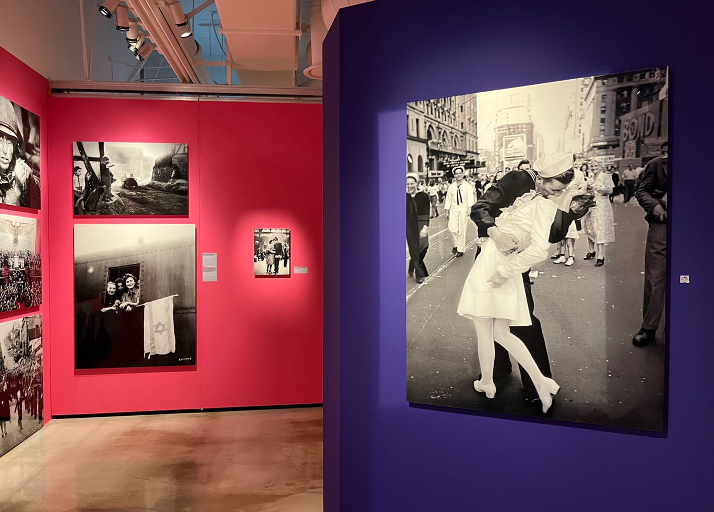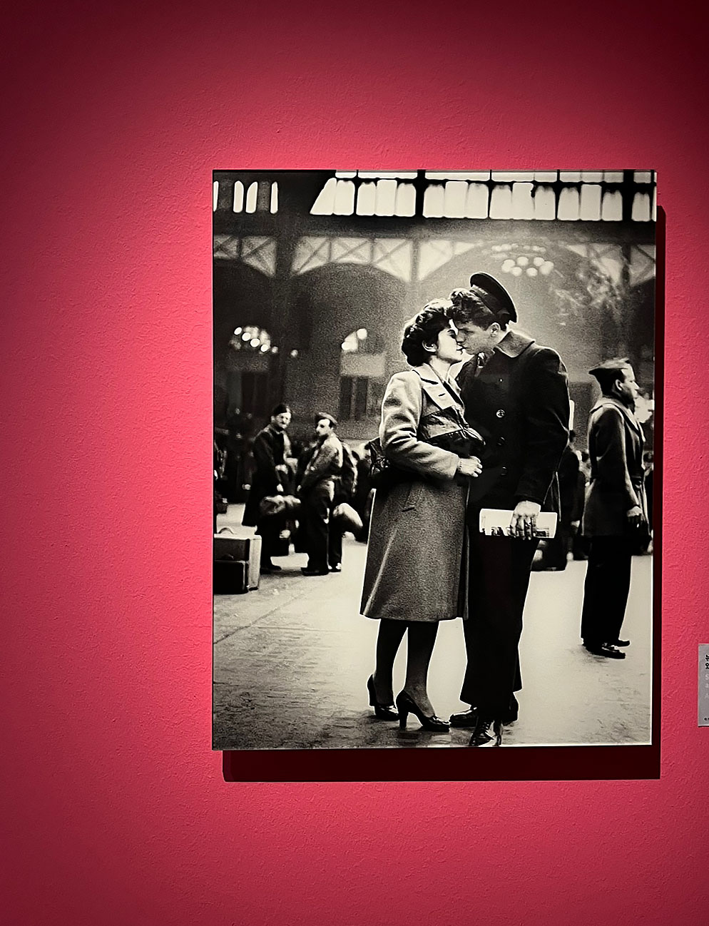 단순히 사랑하는 사람들이 서로 키스를 나누는 것 같은, 어디서 많이 본 듯한 이 사진도 오디오가이드를 통해 들으면 그 사진에 얽힌 숨은 이야기를 엿들을 수 있었는데요. 1945년 8월 14일 전쟁이 끝났다는 방송을 들은 사람들이 종전의 기쁨과 흥분으로 뉴욕 타임스퀘어 광장을 가득 메웠을 때, 알프레드 아이젠슈타트는 카메라를 들고 사람들 사이로 들어가 그날을 기록하기 시작했습니다. 그리고 그는 그때 모든 여자들에게 키스를 날리며 광장을 가로지르는 수령을 목격했어요. 어린 소녀에부터 늙은 부인에 이르기까지 모두 부여잡고 환희의 키스를 퍼붓고 있던 수령을 따라가던 알프레드 아이젠슈타트는 이윽고 한 간호사를 보고 그녀에게 카메라 초점을 맞추었는데요. 그의 기대를 저버리지 않고 그 수령은 간호사에게 키스를 퍼부었고 그 때 알프레드의 셔터가 담아낸 사진이 바로 이 유명한 장면입니다. 이렇게 기쁨으로 가득한 종전의 상황을 사진 한 장에 가득 담겼다는 것을 알고 나니 그 사진의 의미가 또 다르게 느껴지더라구요.