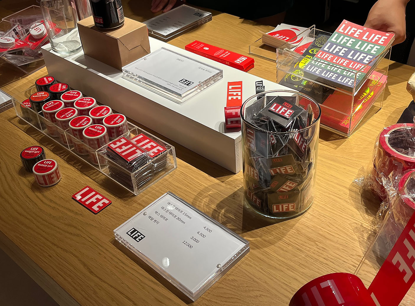 전시 관람을 마치고 나면 제법 완성도 있는 굿즈들을 구경할 수 있는 기념품 샵이 전시 끝 공간이 준비되어 있습니다. 라이프 사진전에서 봤던 주요 사진들의 포스터를 구매할 수 있고, LIFE 로고로 만들어낸 마스킹 테이프, 연필, 스티커, 핸드폰 케이스 그리고 티셔츠와 가방, 모자까지 판매하고 있습니다. 로고 하나가 창출해 내는 수익이 크다는 것은 그만큼 그 로고를 대명사화하기 위해 수많은 노력과 시간을 들였고, 그 작업이 대중에게 통했다는 것이겠죠? 세월이 흘렀지만 매거진의 그 위상은 지금 세대의 사람들에게도 여전히 이어지고 있는 것은 확실합니다.