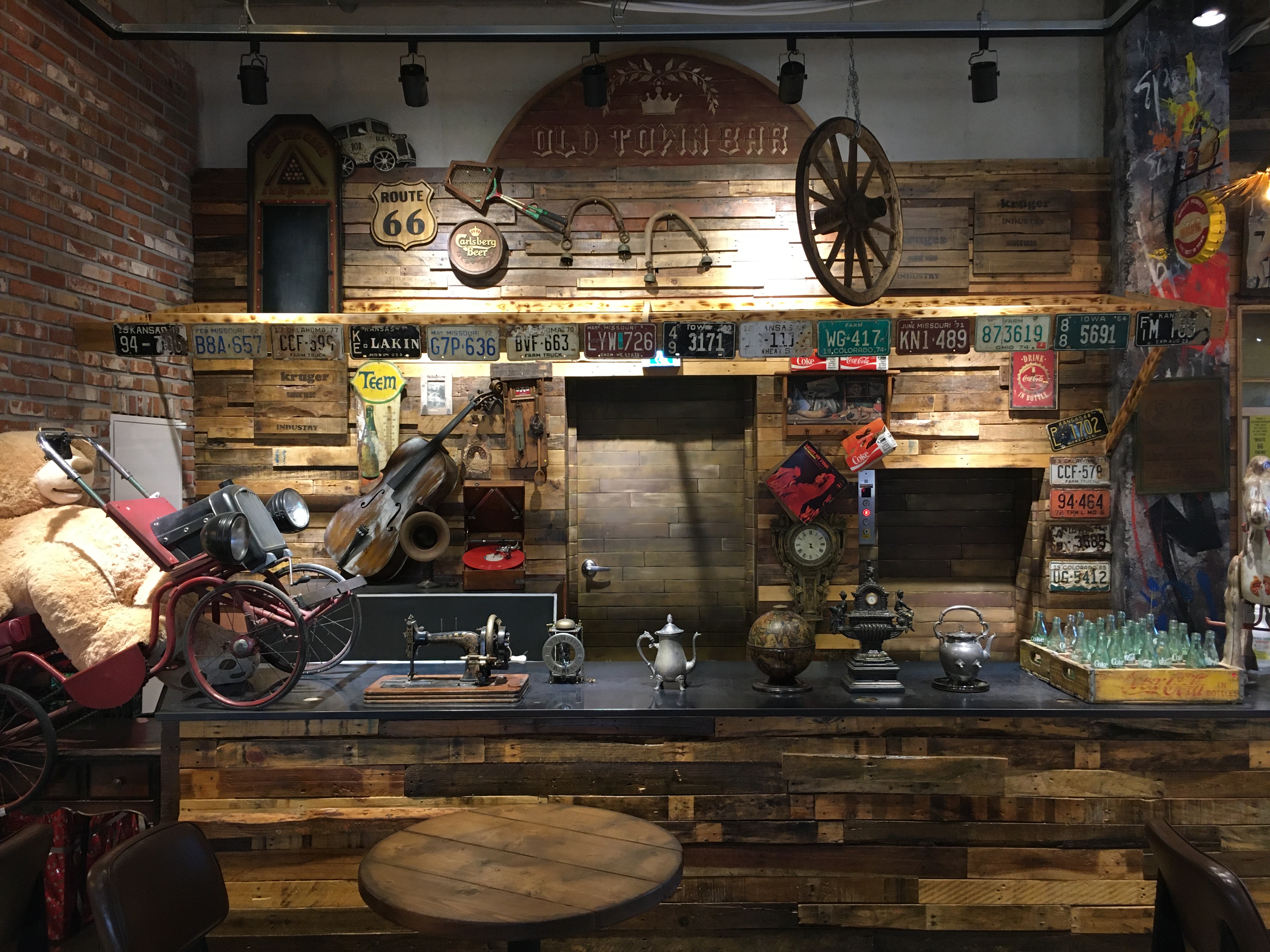 이곳 테이블 일부는 컨테이너 문짝을 떼서 만들었는데요. 빈티지한 감성이 엿보이는 맨해튼의 첼시가 떠오른답니다.
