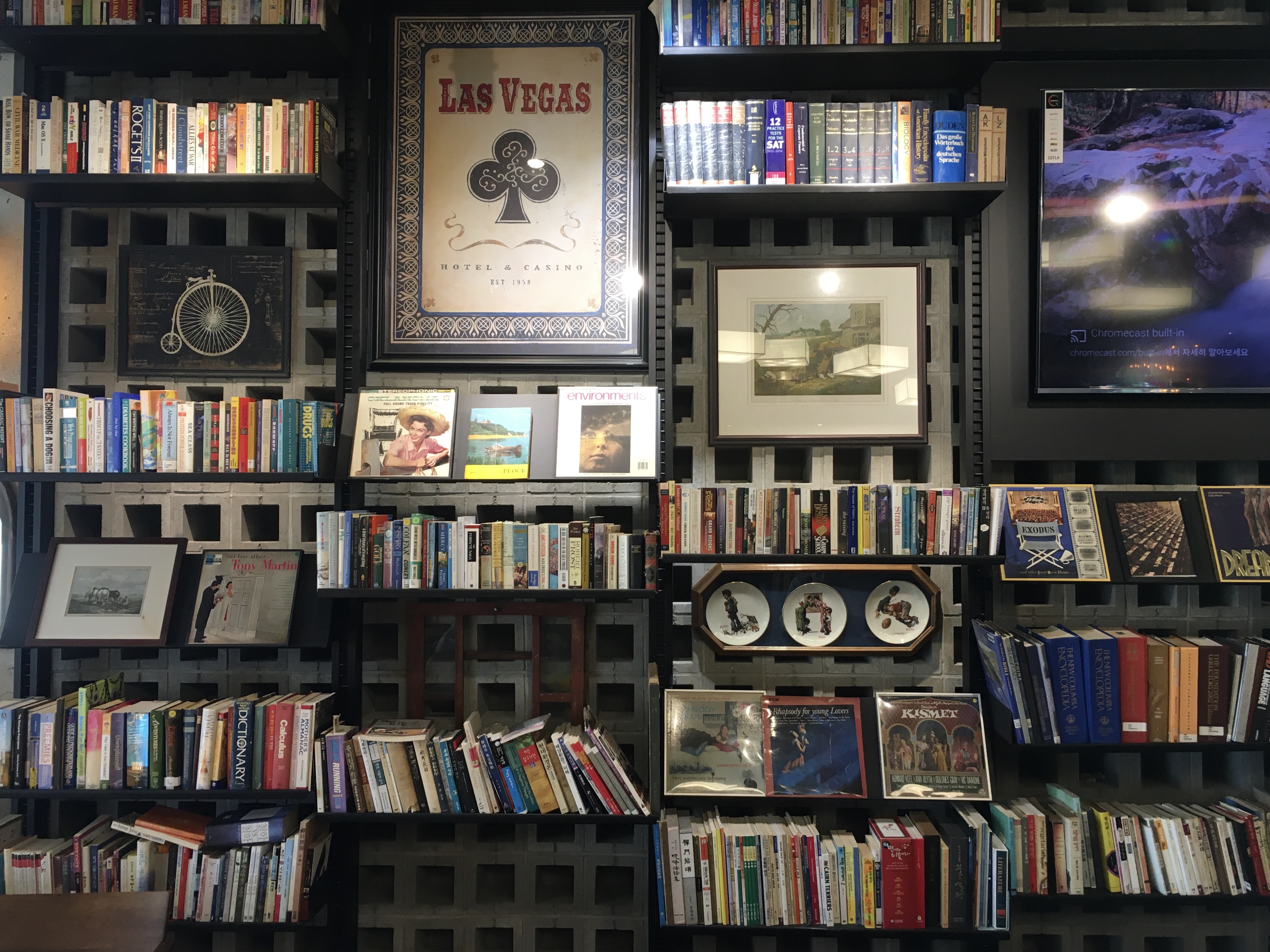 벽면마다 수집해 놓은 오래된 LP 판과 흑백사진, 와인 등 뉴욕의 오래된 소품들과 흔적들도 구경할 수 있어요.