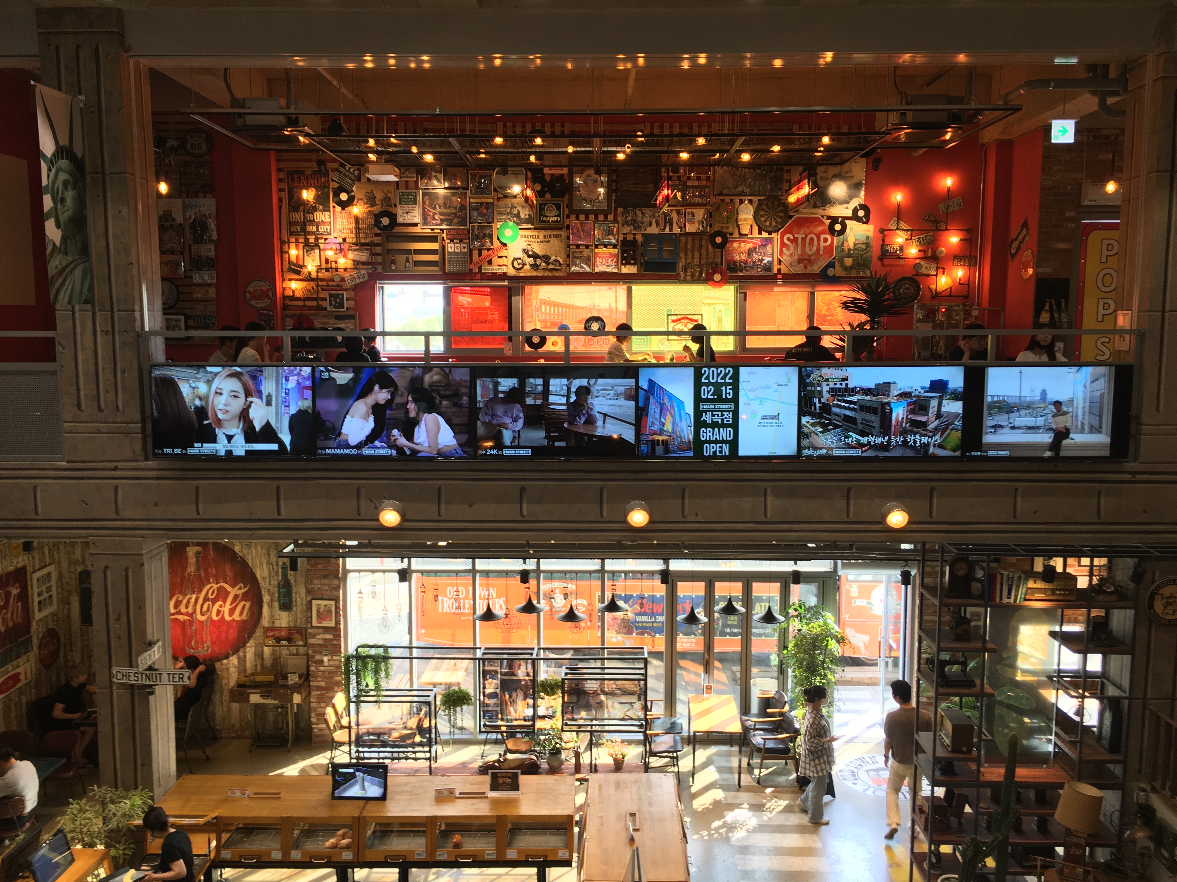 저마다 다른 분위기를 가지고 있어서 자리를 옮겨 가며 조용한 도서관과 옛 뉴욕 거리의 바, 팝 거리의 매력을 제각기 느껴 볼 수 있답니다.