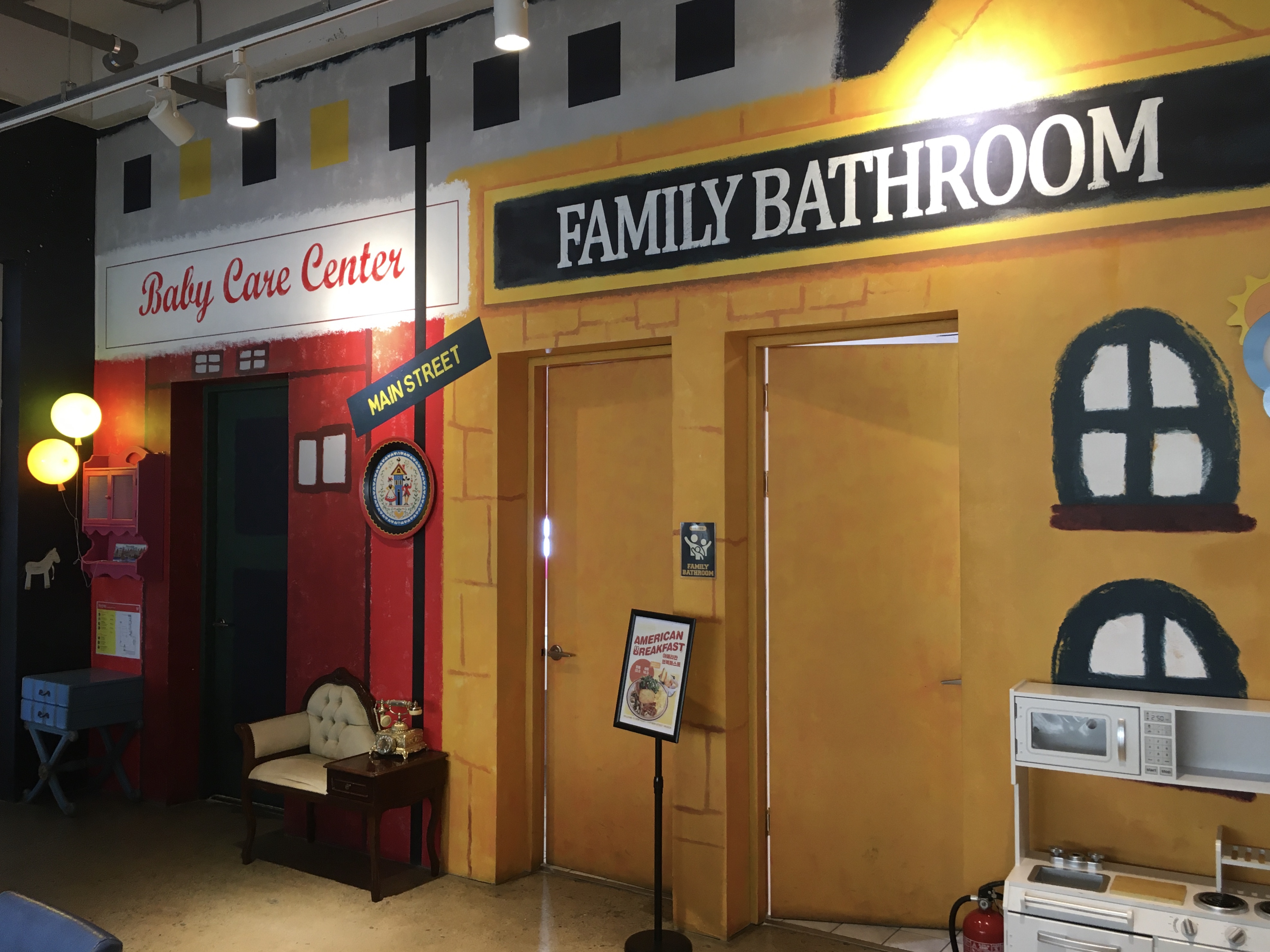 부모가 키즈 플레이그라운드에서 놀고 있는 아이들을 바라보면서 음료를 마시고 대화를 나누거나 쉴 수 있는 공간과 자녀와 함께 이용할 수 있는 '패밀리 배스룸(FAMILY BATHROOM)'이 마련되어 있습니다.