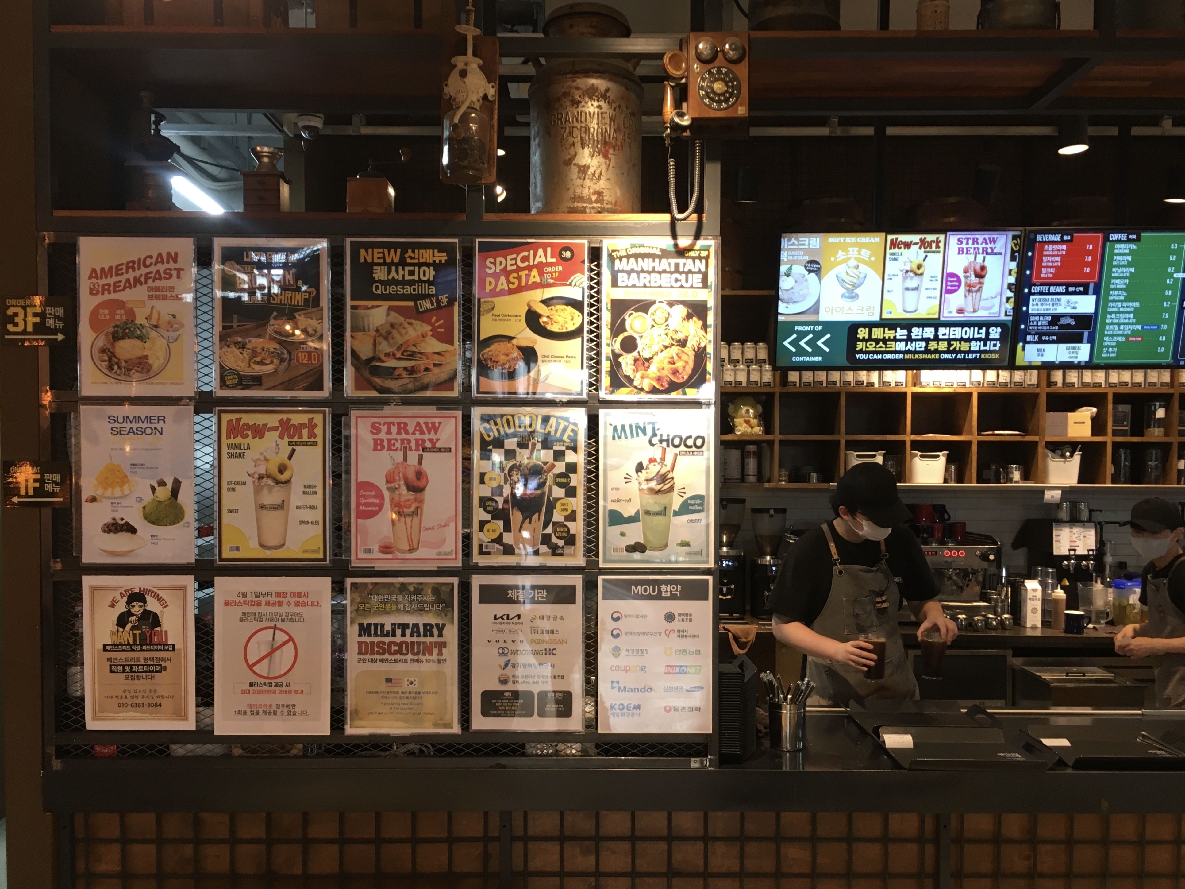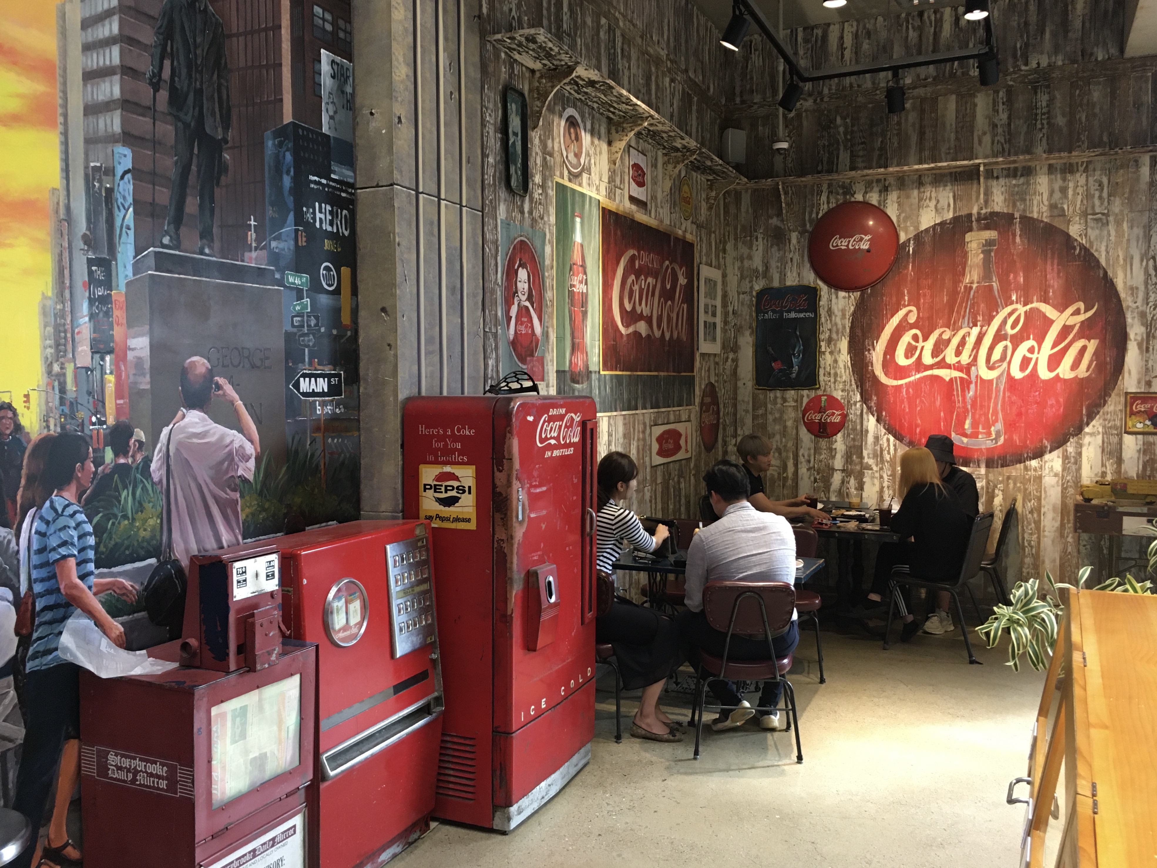 신문, 담배, 콜라 자판기로 한쪽 벽면을 채운 코카콜라 존도 있고, 계단에는 커피에 관련한 옛 물건들을 전시한 커피 미니 박물관 콘셉트의 '커피 뮤지엄(COFFEE MUSEUM)'도 있어요.