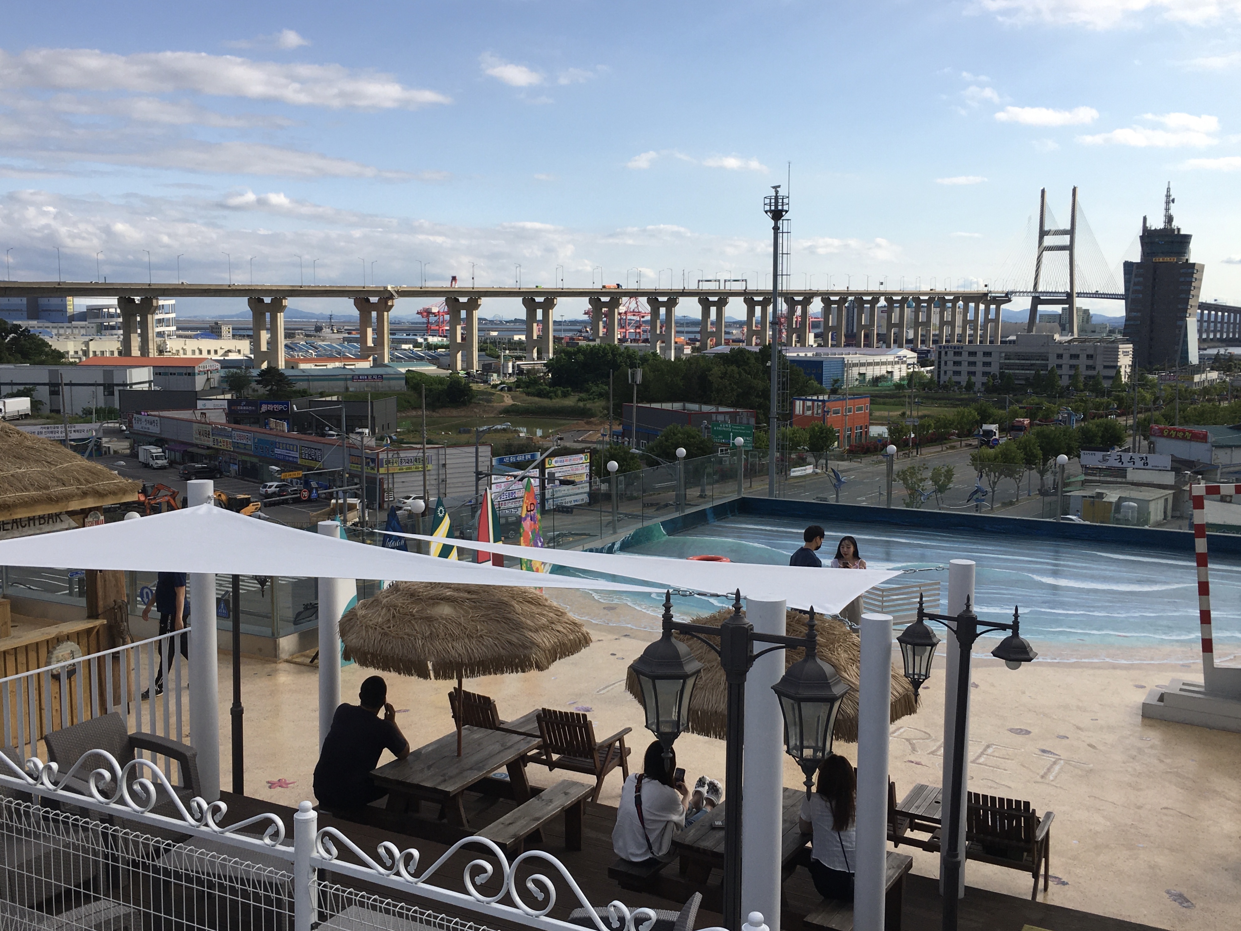 칵테일 바 옆 피크닉 테이블에서는 브루클린 브리지처럼 서해대교를 한눈에 볼 수 있습니다. 한국에서 세 번째로 긴 교량인 서해대교를 바라보며 휴식을 취할 수 있죠.