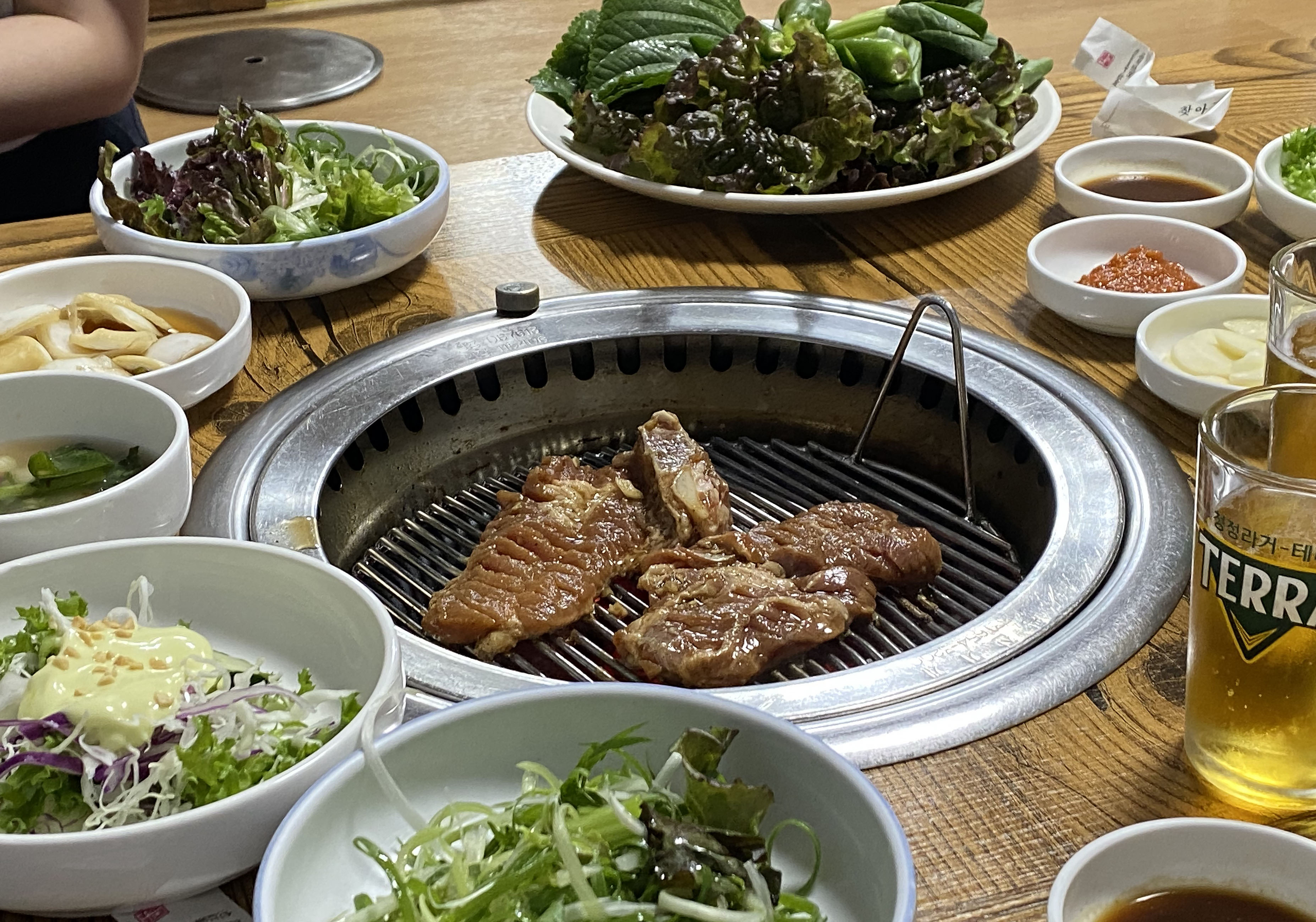 의외로 경주에서 맛집을 검색하면 항상 상위권에 나오는 종목 중 하나가 숯불갈비였습니다. 실제로 경주 주민들 사이에서는 강남숯불갈비와 영양숯불갈비가 가장 유명하다고 해요. 영양숯불갈비는 단체 예약이 되기는 하지만 3-4인 이내 소규모 인원의 예약은 힘들고, 주말에는 일찍 웨이팅이 마감될 수 있다고 하여 강남숯불갈비를 찾았습니다. 소갈비와 돼지갈비가 모두 보통 가격에 비해 저렴했는데요 양념갈비는 1인분에 10,000원밖에 하지 않아 놀랐어요.