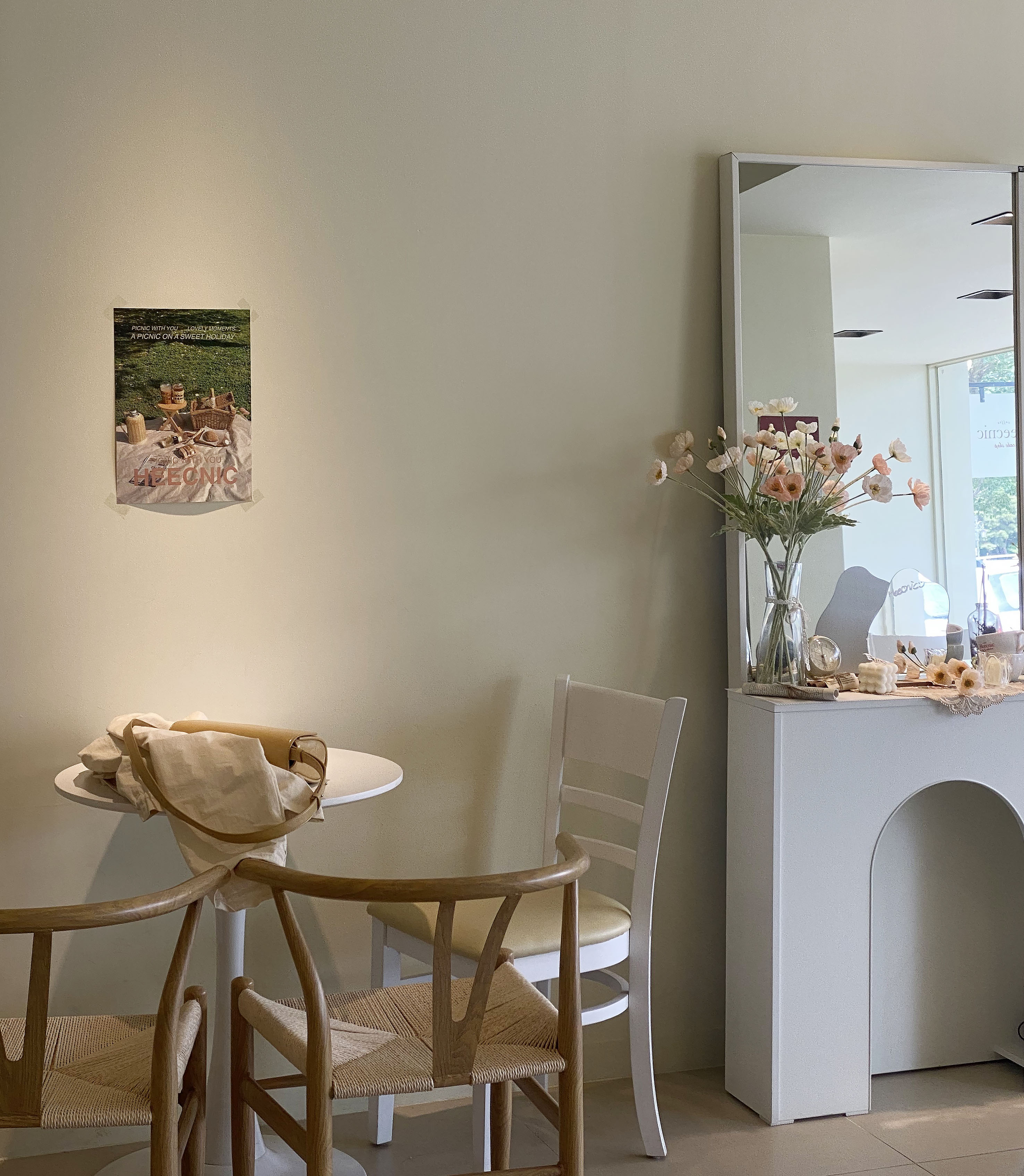 감성적인 맛집이 넘쳐나는 황리단길에서 카페를 빼놓을 수는 없겠죠? 황리단길 초입에서 조금 거리가 떨어진 히크닉이란 카페를 찾았어요. 황리단길의 카페들은 많이 붐벼서 조금 한산한 곳을 찾다 보니 황리단길 초입의 카페를 방문하게 되었습니다. 화이트톤의 인테리어에 바다의 모래자갈을 연상시키는 바닥이 시원했어요.