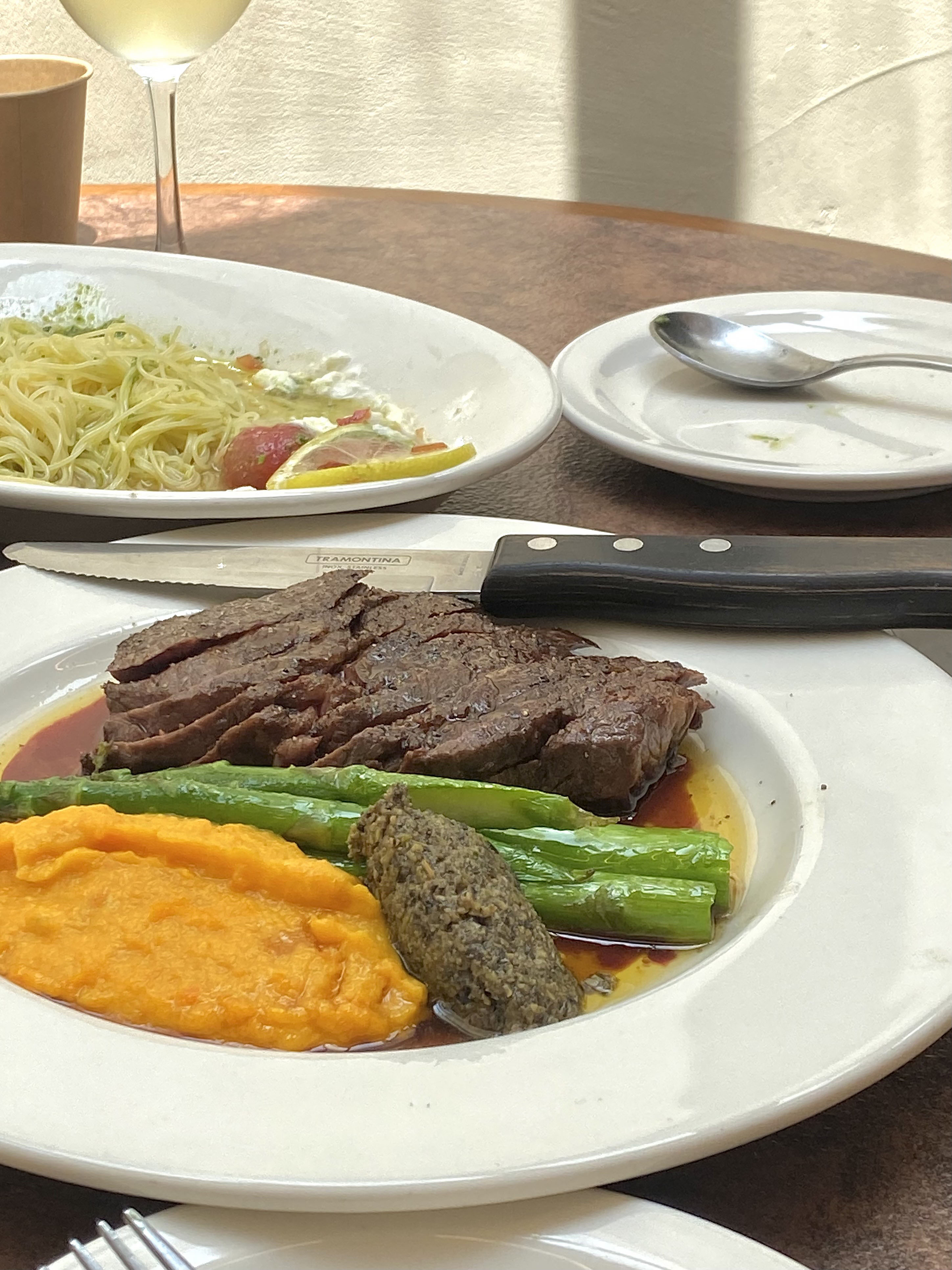 오스테리아밀즈의 베스트 메뉴 3가지를 시켰는데요. 단호박퓨레와 아스파라거스가 함께 나오는 살치살 스테이크의 양은 가격만큼 푸짐하고 굽기가 적당했습니다. 한치 먹물 리조또는 평소에 먹어 본 리조또와는 달리 견과류가 함께 씹혀서 고소하면서 짭짤한게 중독성 있는 맛이었습니다. 특히 가장 대표 메뉴라고 할 수 있는 카프레제콜드카펠리니 냉파스타는 리코타 치즈와 함께 나와 시원하게 맛볼 수 있어 여름에 시키기에 좋았어요.