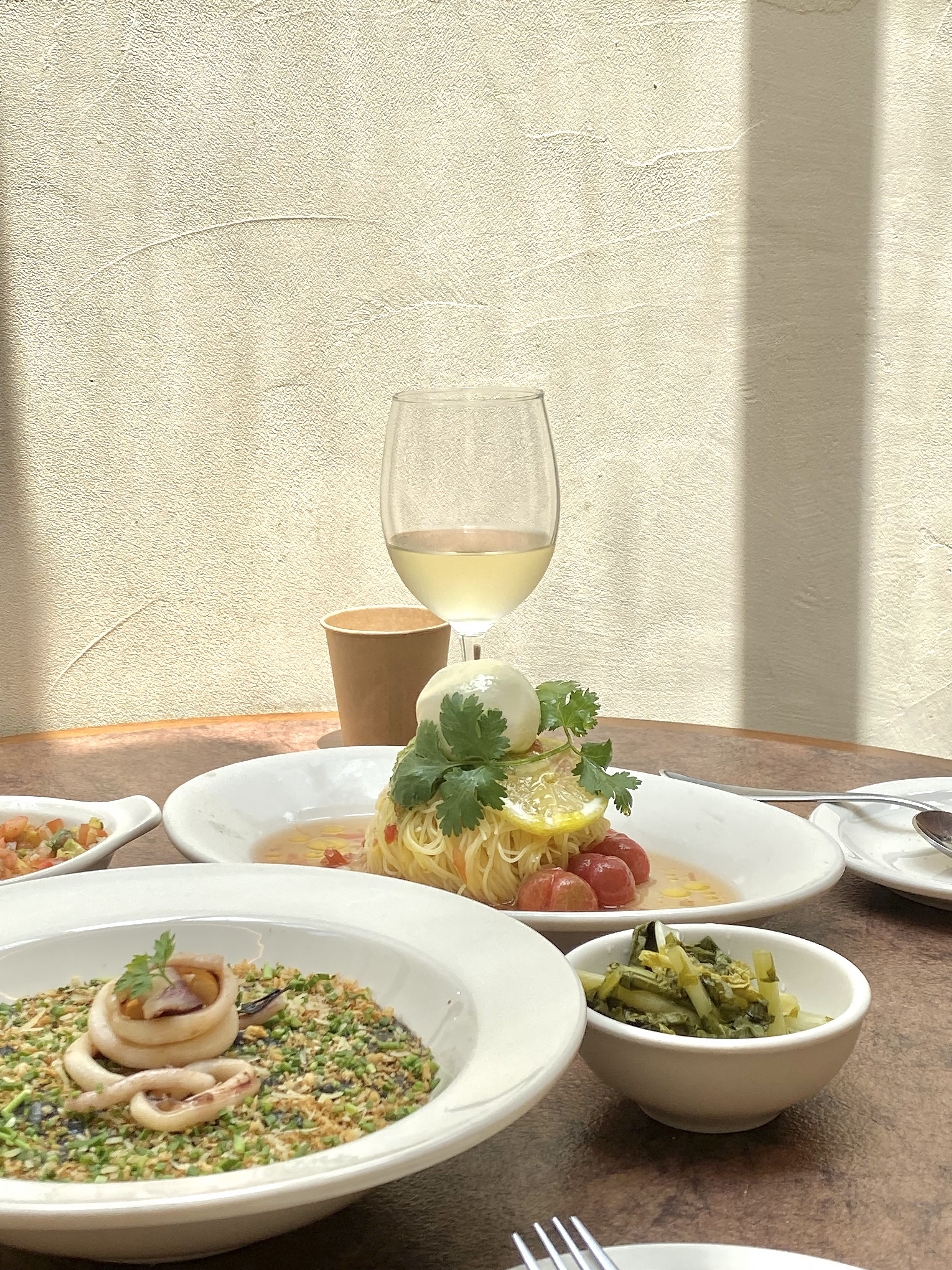 경주에 도착해 가장 먼저 찾은 곳은 황리단길 내에 위치한 이태리 맛집 오스테리아밀즈입니다. 황리단길은 한국적인 이미지가 가장 먼저 떠오르는데 의외로 이탈리안 파스타집도 정말 많이 있었어요. 그중에서도 경주에 사는 친구에게 추천을 받아 간 곳은 냉파스타가 유명한 오스테리아밀즈라는 레스토랑이었는데요. 깔끔하지만 기와지붕과 서까래를 그대로 드러낸 천정의 조화가 매력적인 곳이었습니다.